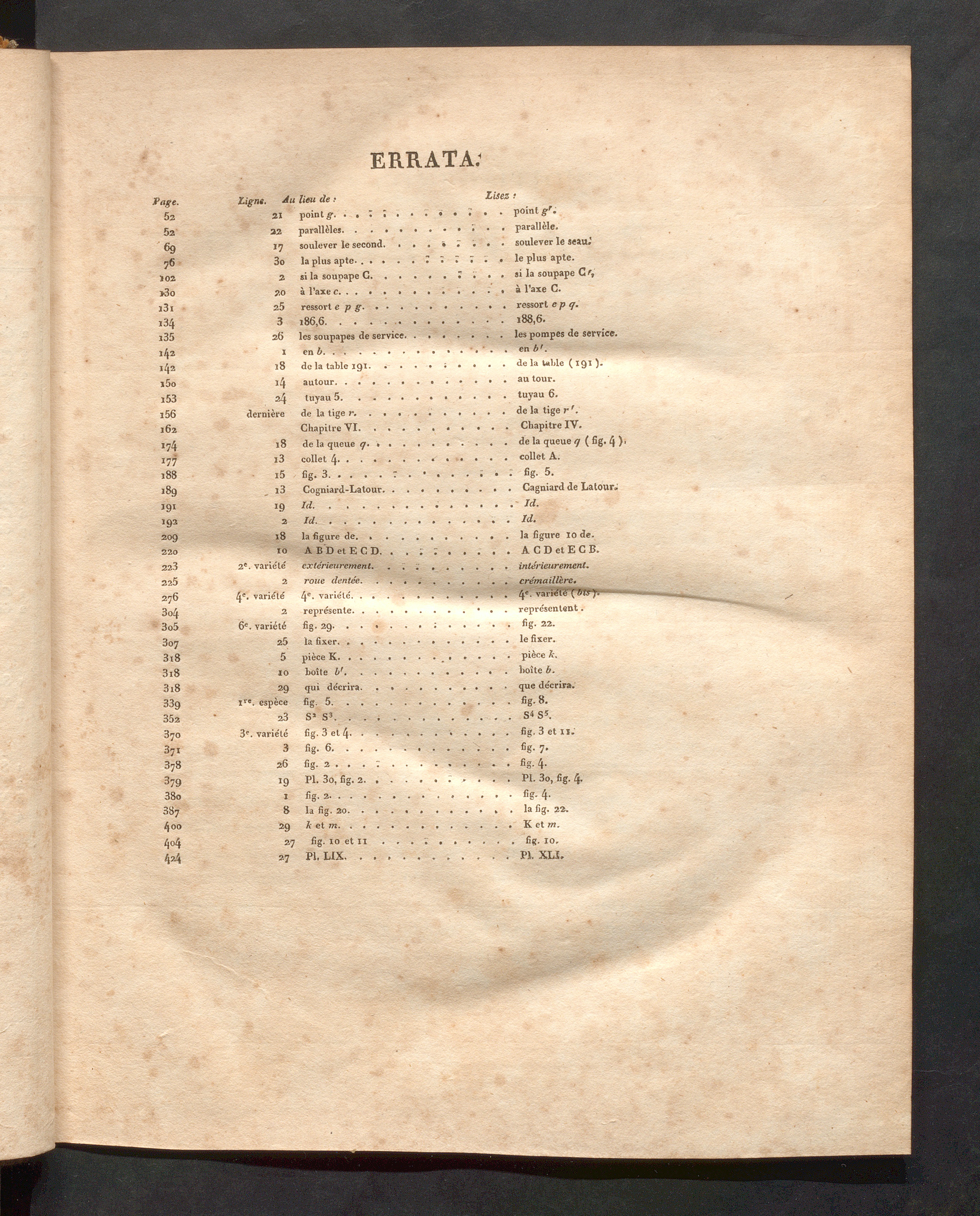 Page. Ligne. Au lieu de .• LlSez f