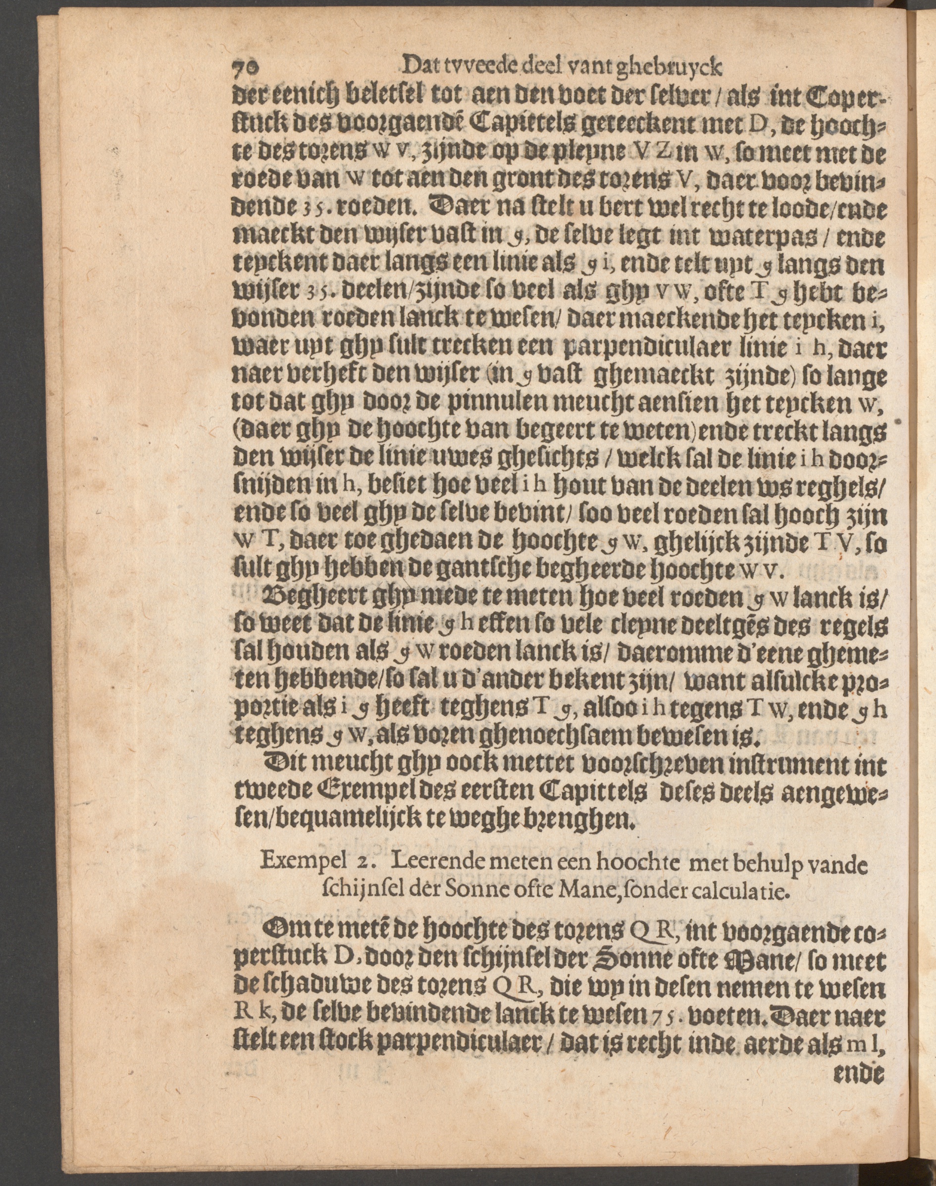 Dit meucht ghy oock mettet vooꝛſchꝛeven inſtrmnent inttweede Exempel des eerlten Capittels deles deels aengewe-ſen/ bequamelijck te weghe bꝛenghen.