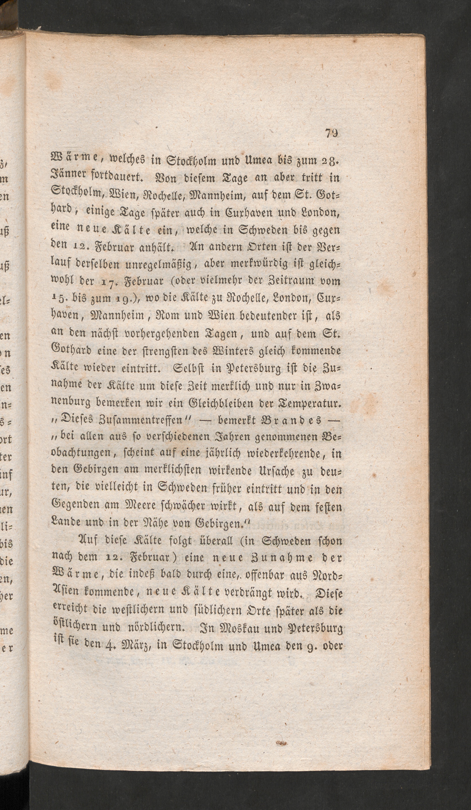 SB arme, welches in @to<fl)olm unb Urne« bis junt 2 ß.Sanner fortbauert. SSon biefern Sage an aber tritt inStQdf)olm, Sßien, 3 iod;elle, Ptannpeim, auf bem St. ©ot=^rb, einige Sage [pater auch in ßurpaoen unb Sonbon,«itte neue Saite ein, welche in Schweben bis gegenben i 2 . Februar anbalt. Tin anbern Srten ift ber S3er=lauf berfelben unregelmäßig, aber merfwürbig ift gleichWof)l ber 17 . gcbruar (ober Pielmepr ber Beitraum oom15 . bis jum 19 .), wo bie .Saite ju 9tod)eiIe, Sonbon, 6 up=baren, Ptannpeim , 9fom unb SBien bebeutcnber ift, alsft n ben näcbft oorl)ergel)enben Sagen, unb auf bem St.®otf)arb eine ber jtrengften beS SBinterS gleich fommenbe■Saite wieber eintritt. Selbjf in Petersburg ift bie 3u=nabme ber .Seilte um biefe Beit merflid) unb nur in 3wa=nenburg bemerfen wir ein ©leidjbleiben ber Semperatur.„ 2)icfeS Bufammentreffcn" — bemerft £3ranbeS —„ bei allen auS fo oerfchiebenen Saprcn genommenen 33e=obadptungen, fcpeint auf eine jährlich wieberfchrenbe, inben ©ebirgen am merflibpften wirfenbe Urfadje ju beu=ten, bie Pielteicpt in Schweben früher eintritt unb in ben©egenben am Pleere fdjwadper wirft, als auf bem feften£anbe unb in ber 9tape ron ©ebirgen."