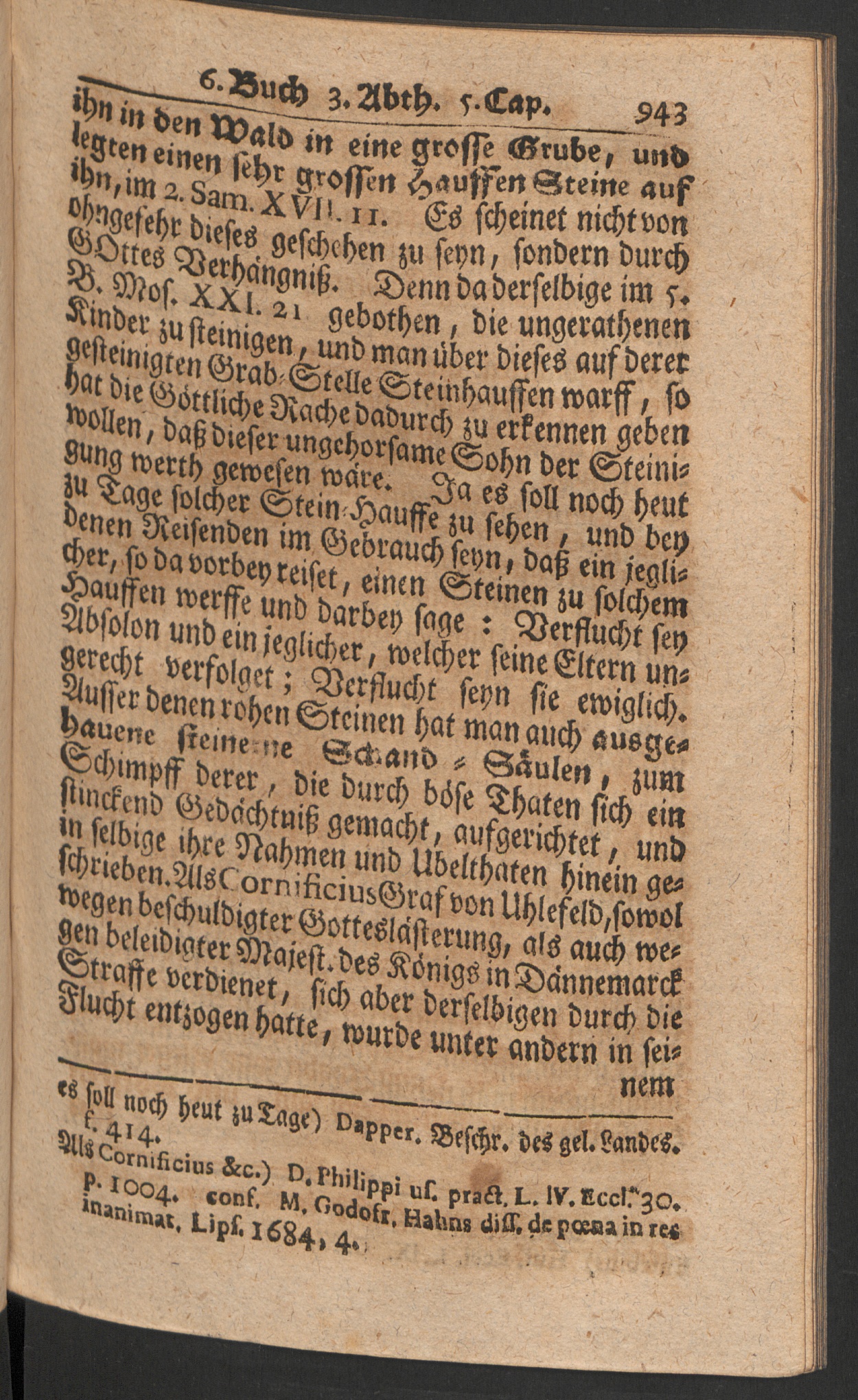 *;«t die Göttliche Rache dadurch zu erkennen gebensollen, daß dieser ungehorsame Sohn der Steim-8ung werth gewesen wäre. Ja es soll noch heutru Tage solcher Stein-Hausse zu sehen , und beydenen Reisenden im Gebrauch seyn, daß ein jegli-cher, so da vorbey reiset, einen Steinen zu solchemHaussen werffe und darbey sage : Verflucht seyAbsolon und ein jeglicher, welcher seine Eltern un-gerecht verfolget; Verflucht seyn sie ewiglich.Ausser denen rohen Steinen hat man auch ausge-hauene steine ne Gctmnb - Gäulen, zumSchimpff derer, die durch böse Thaten sich einsiinckend Gedächtniß gemacht, aufgerichtet, undw selbige ihre Nahmen und Ubelthaten hinein ge-fchrieben.Als^ vrnitrciubGraf von Uhlefeld,sowültvegenbeschuldigterGotteslälli»rttn/, / “ ,J * 4 * 4 '*'