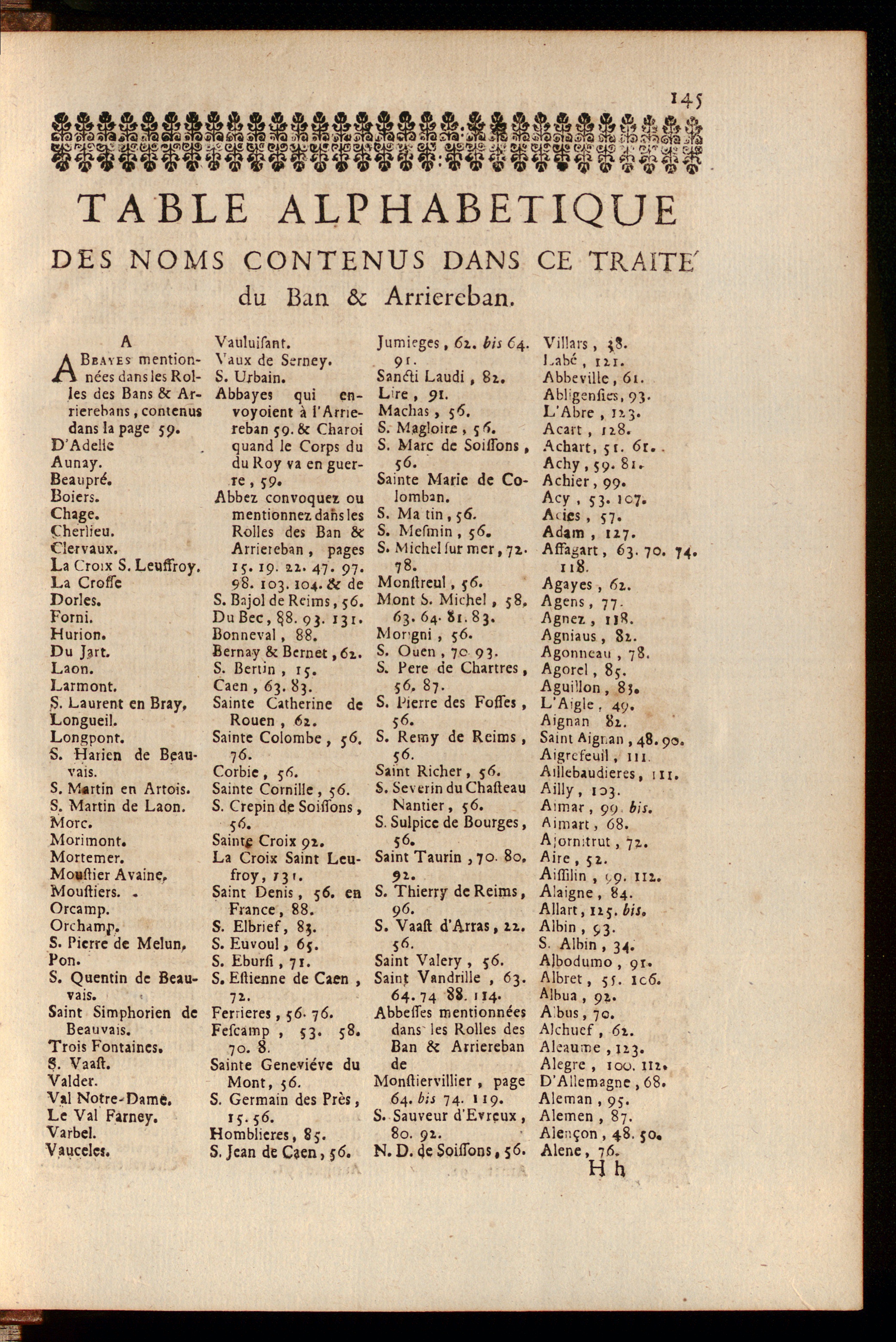 Abbayes qui en-voyoient à l’Arrie-reban 59. & Charoiquand le Corps dudu Roy va en guer-re . 59.