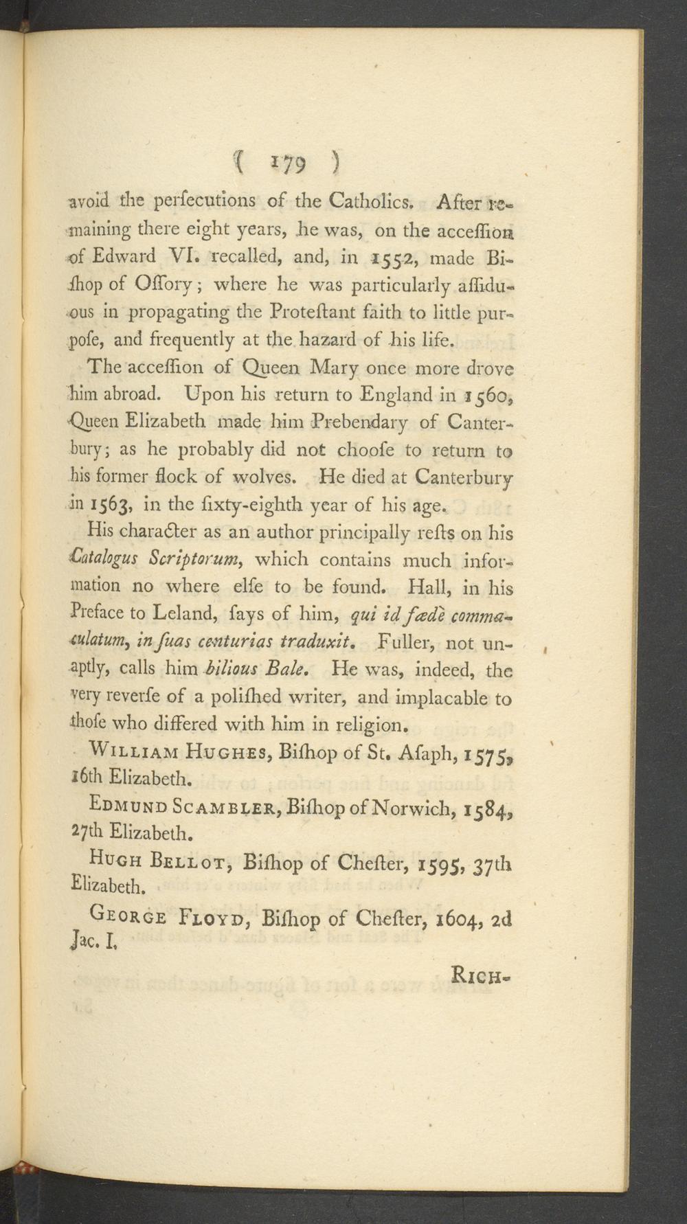 avoid the perfections of the Catholics . After re-maining there eight years, .he was, on the acceffionof Edward VI . recalled, and, in 1552, made Bi-ihop of OlTory; where he was particularly affidu-ous in propagating the Proteftant faith to little pur-pofe, and frequently at the hazard of his life.
