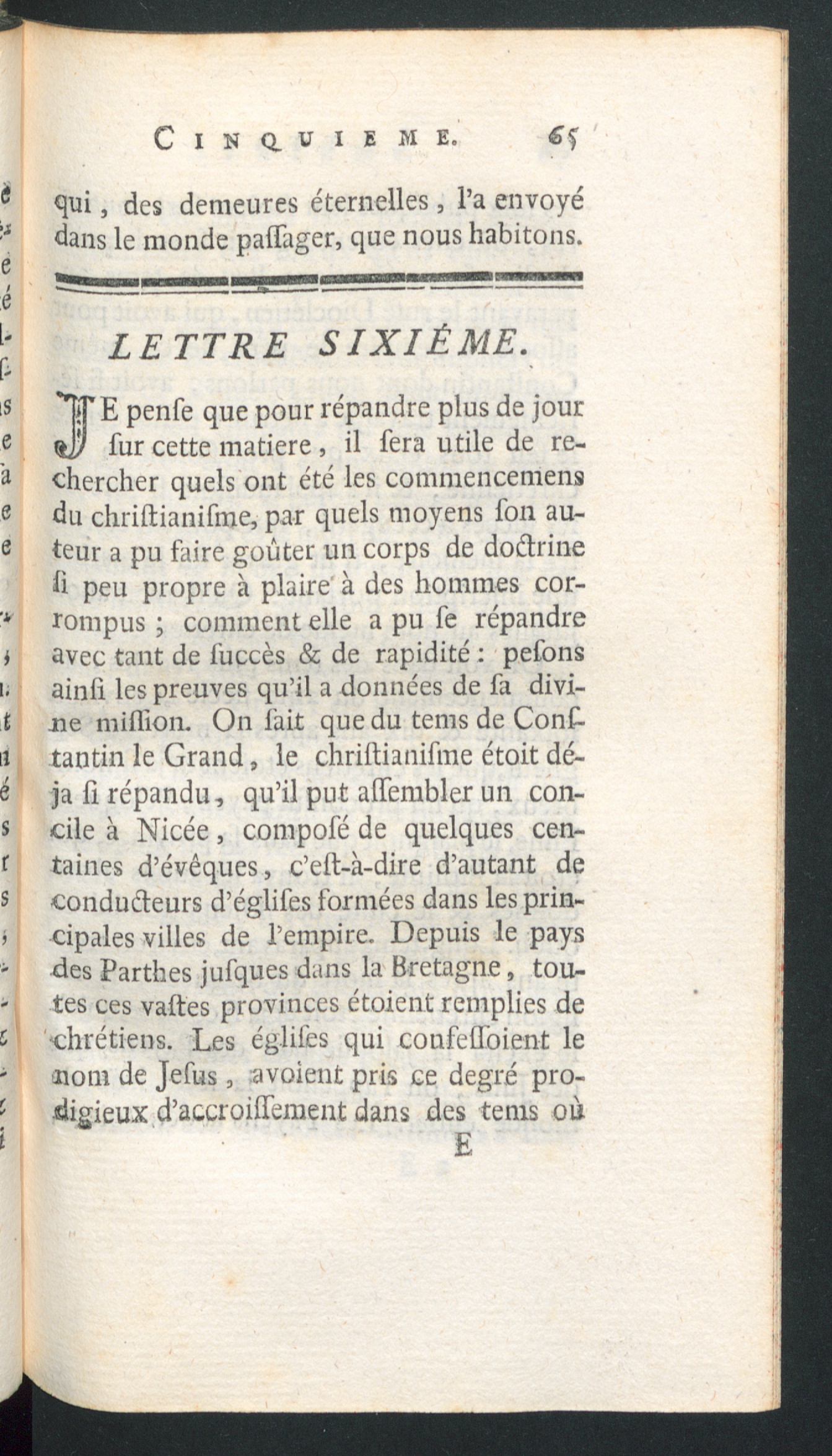 *7íTE pense que pour répandre plus de jourQJ/ fur cette matière, il fera utile de re-chercher quels ont été les commencemensdu christianisme, par quels moyens son au-teur a pu faire goûter un corps de doctrineli peu propre à plaire' à des hommes cor-rompus ; comment elle a pu fe répandreavec tant de succès & de rapidité : pesonsainsi les preuves qu’il a données de fa divi--ne mission. On lait que du tems de Consstantin le Grand, le christianisme étoit dé-jà íì répandu, qu’il put assembler un con-cile à Nicée, composé de quelques cen-taines d’évêques, c’est-à-dire d’autant deconducteurs d’églifes formées dans les prin-cipales villes de l’empire. Depuis le paysdes Parthes jusques dans la Bretagne, tou-tes ces vastes provinces étoient remplies dechrétiens. Les églises qui coufessoient lenom de Jésus, avoient pris ce degré pro-digieux d’accroissement dans des tems où