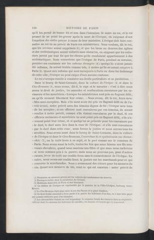 Dans le bourg de Saint-Germain, dans la culture de l’évêque (4) et dans leClos-Bruneau (5), nous avons, dit-il, le rapt et le meurtre « c’est à dire nousavons le droit de justice, les amendes et confiscations encourues par les ra-visseurs et les meurtriers.'' Lorsque les ministériaux sont pris en flagrant délit,ou qu’ils avouent librement leur crime, « Nous avons, dit le roi, leurs meu-» blés sans exception. Mais s’ils nient avoir été [iris en flagrant délit ou de l’a-» voir avoué, notre prévôt aura des témoins dignes de foi : l’évêque sera tenu» de les accepter; si ces officiers sont convaincus par ces témoins, ils seront» rendus à notre prévôt, comme s’ils étaient convaincus par le duel. Si ces» officiers ravisseurs et meurtriers ne sont point pris en flagrant délit, s’ils n’a-» vouent point leur crime, et si quelqu’un se présente pour les convaincre par» le duel, le duel aura lieu dans la cour de l’évêque; et s’ils sont convaincus» par le duel dans cette cour, nous ferons la justice et nous aurons tous les« meubles. Nous avons aussi dans le bourg de Saint-Germain, dans la culture» de l’évêque et dans le Glos-Bruneau, Yexercitum (6) et equitationem (ou chevau-» chée) (7), ou la taille levée à ce sujet, et le guet comme sur le commun de» Paris . Nous avons aussi la taille , toutes les fois que nous faisons nos fils nou-» veaux chevaliers, quand nous marions nos filles et que nous nous rachetons» si nous sommes pris à la guerre; mais nous ne pouvons pas, pour d’autres» causes, lever de taille sur cesdits lieux sans le consentement de l’évêque. En» outre, nous avons sur cesdits lieux la justice sur les marchands pour ce qui» concerne la marchandise. Nous y avons aussi des crieurs pour les mesures du» vin. Quant aux mesures de blé, voici ce qui est convenu : notre prévôt de