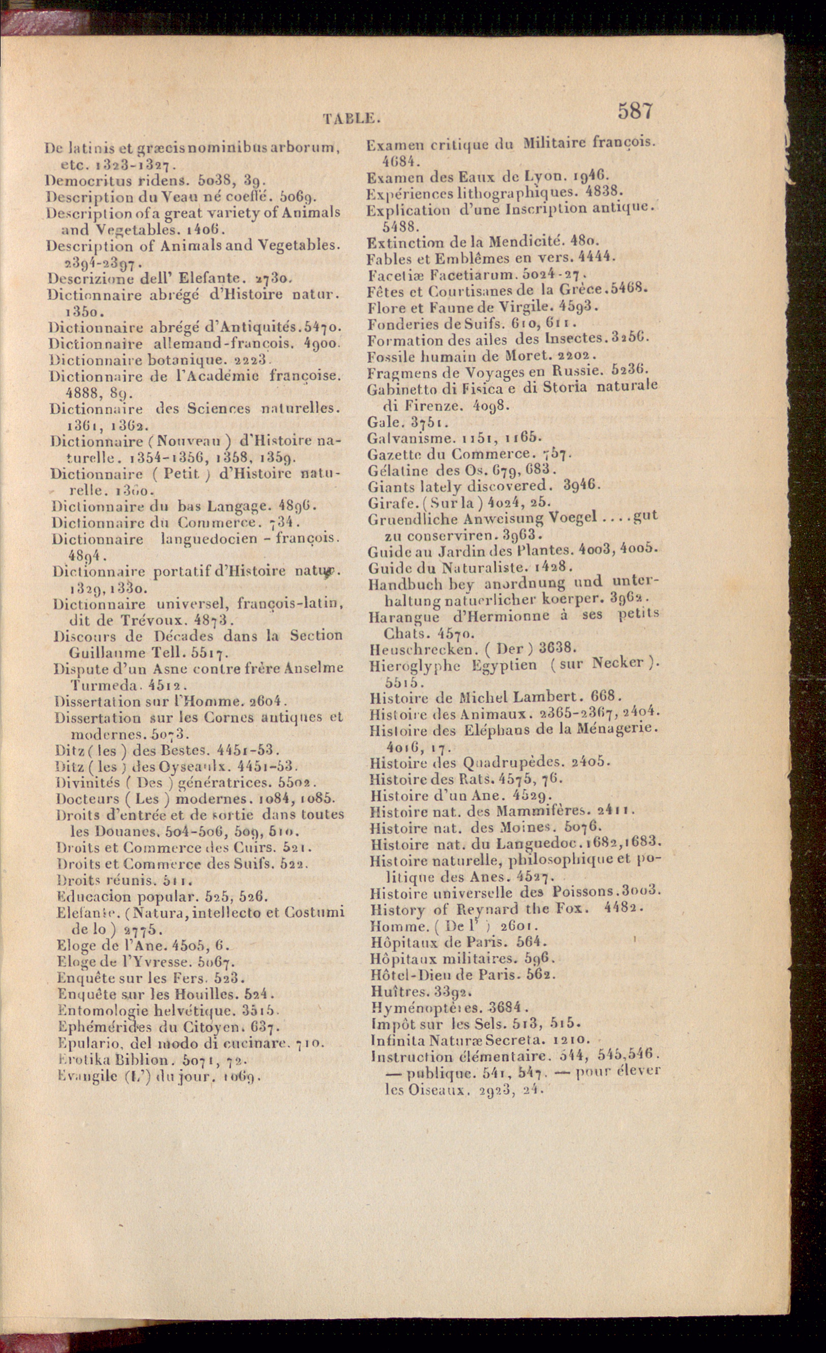 Infinita Naturre Sécréta. 1210.Instruction élémentaire. 544 , 546 , 546 .— publique. 54 i, 64 ?. — pour éleverles Oiseaux. 2926, 24 .