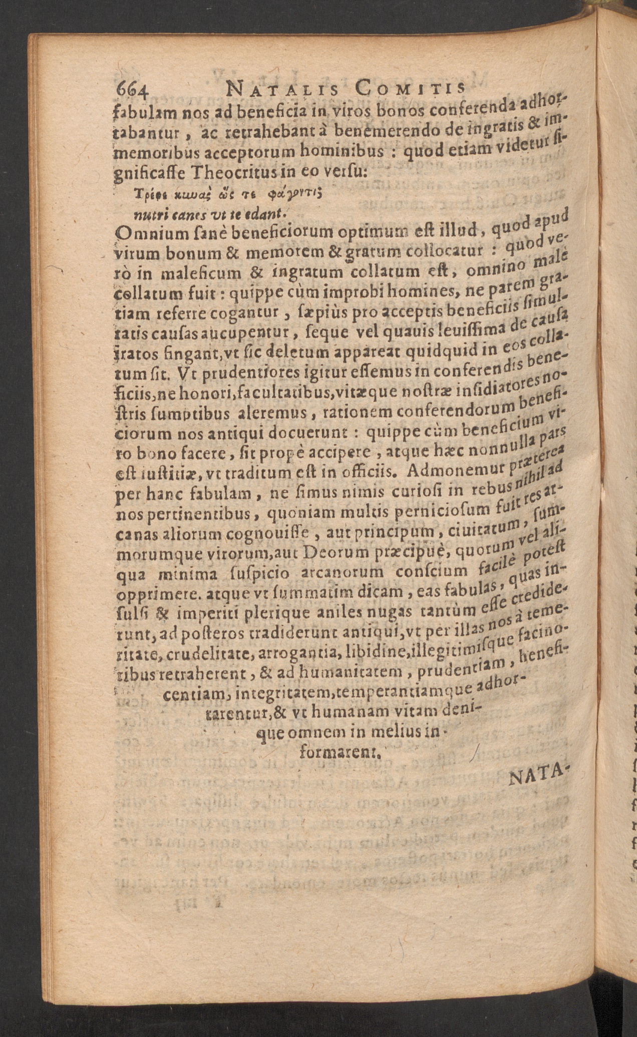 Natalis Comitis mythologiae, sive explicationis fabularum, libri decem : in quibus omnia prope naturalis & moralis philosophiae dogmata contenta fuisse demonstratur ; eiusdem libri IV de venatione .... accessit: Musarum mythologia et Anonymi observationum in totam de Diis gentium narrationem, libellus / G. Linocerii