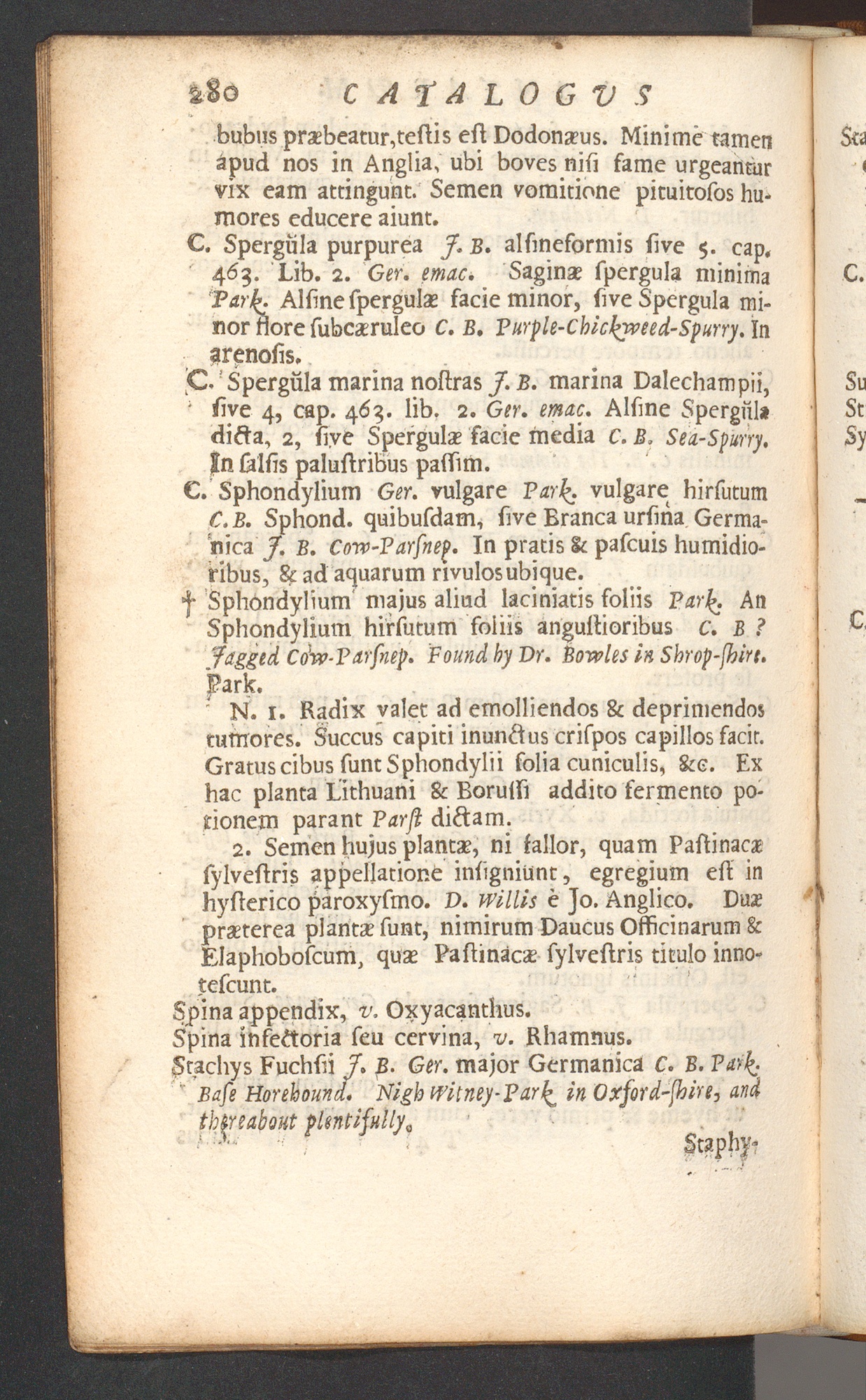 Catalogus plantarum Angliae, et insularum adiacentium : tum indigenas, tum in agris passim cultas complectens : in quo praeter synonyma necessaria, facultates quoque summatim traduntur, una cum observationibus & experimentis novis medicis & physicis / opera Ioannis Raii