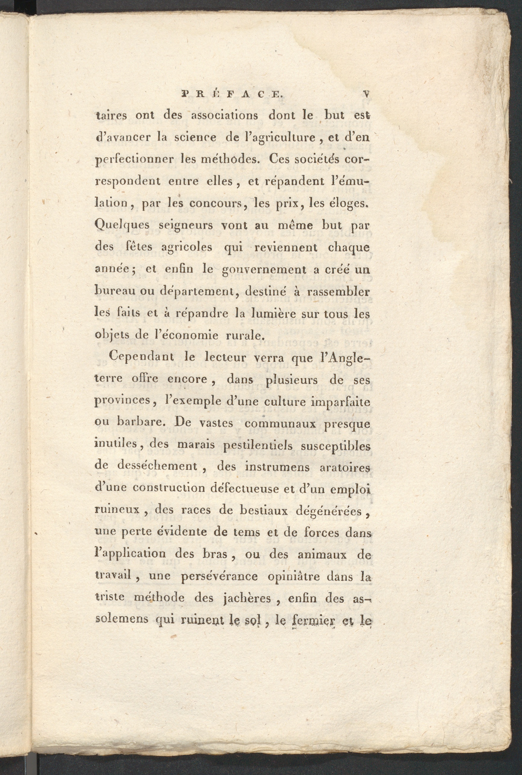 Projet d' un rapport général sur l' état actuel de l' agriculture de la Grande-Bretagne, et sur les moyens de la perfectionner, pour être soumis é s. m. et aux deux chambres du parlement, par le département d' agriculture.