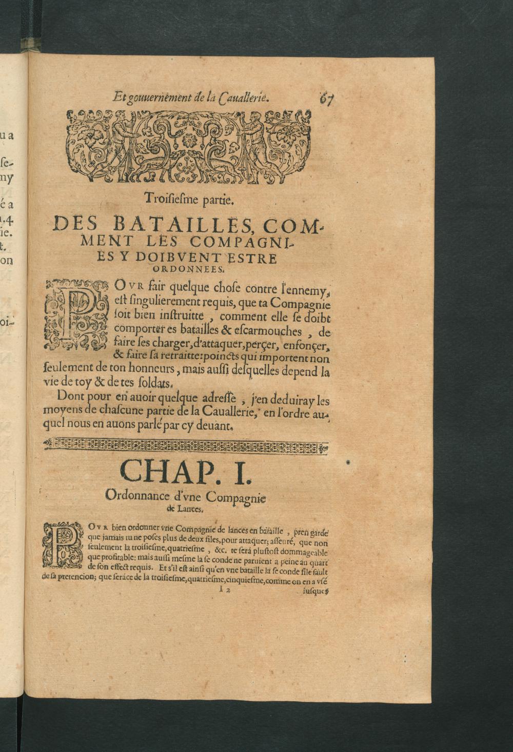 Art militaire à cheval: instruction des principes et fondements de la cavallerie, et de ses quatre espèces, a sçavoir: lances, corrasses, arquebus & drageons, avec tout ce qui est de leur charge & exercices : avec quelques nouvelles inventions de batailles ordonnées de cavallerie : et démonstrations de la nécessité, utilité et excellence de l'art militaire, sur toutes aultres arts et sciences : expérimenté, descript & représenté par plusieurs belles figures entaillées en cuivre / par Jean Jaques de Wallhausen