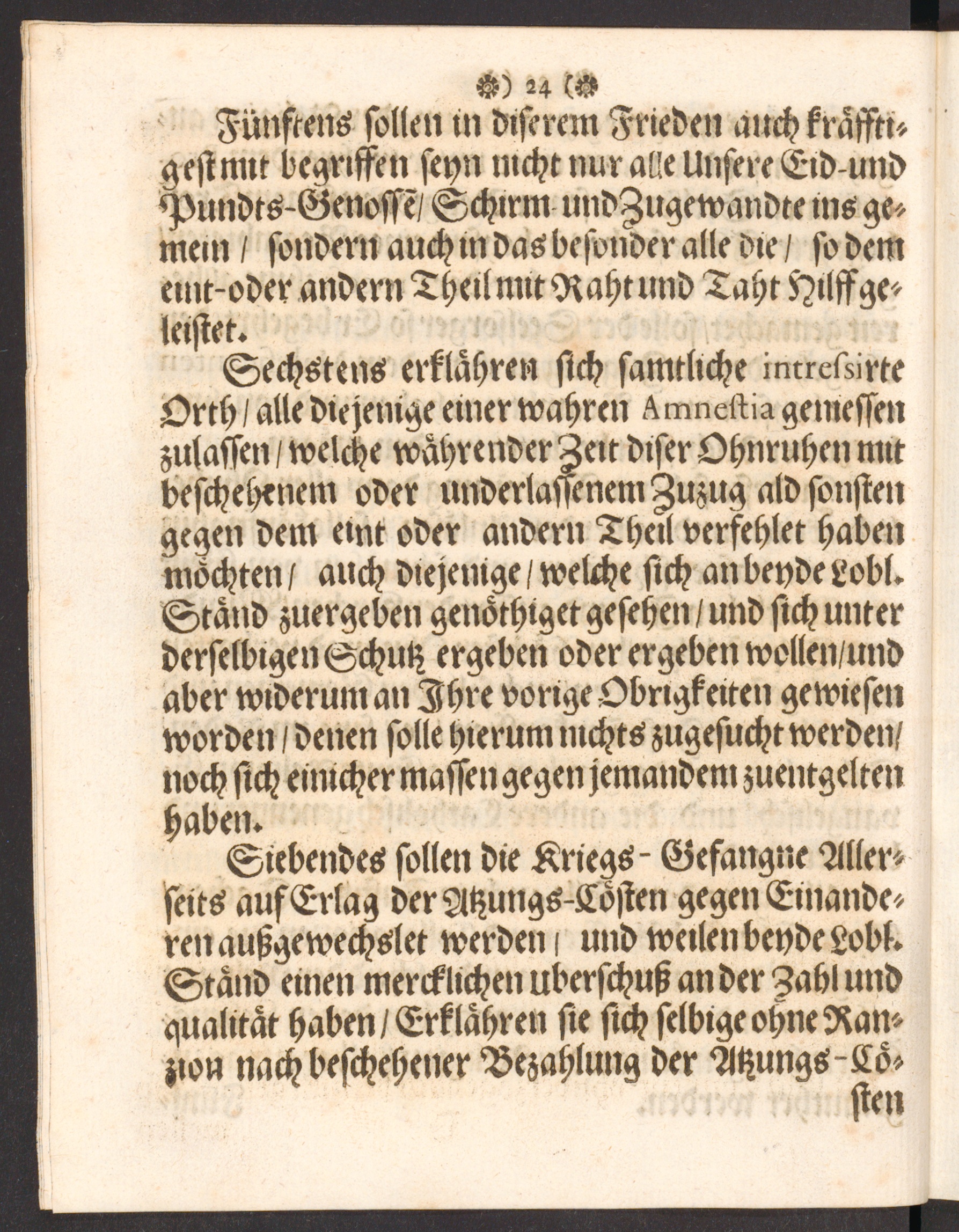 Friedens-Instrument zwüschent denen lobl. Eidgnössischen Ständen Zürich und Bern einer- und Lucern, Uri, Schweitz, Underwalden Ob- und Nidt dem Kernwald, und Zug samt dem ausseren Ambt anderseits, zu Arauw aufgericht, und geschlossen, den 18. Julij, 9. und 11. Augustj, des 1712 Jahrs
