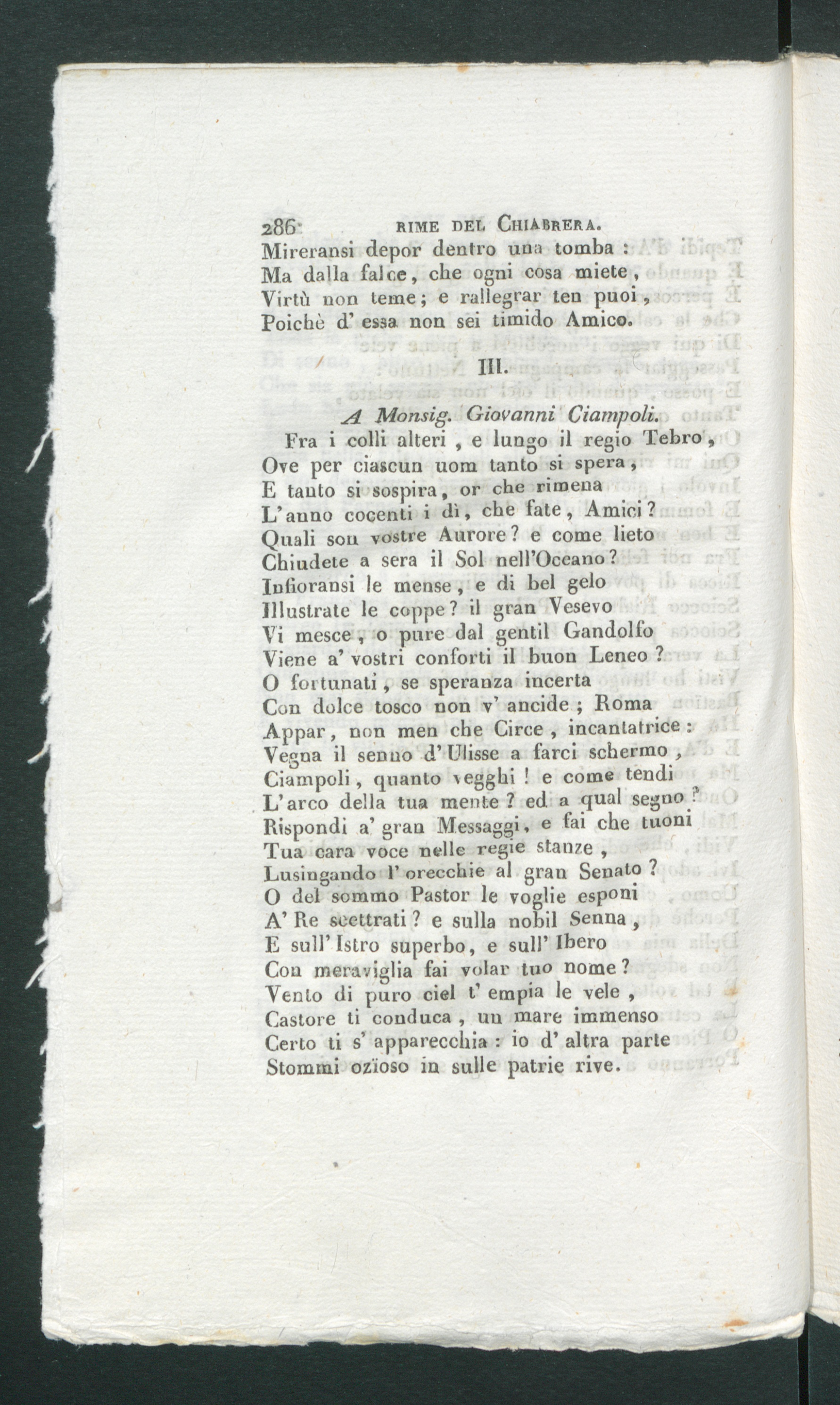2 (1807) Rime di Gabriello Chiabrera contenente canzonette amorose e morali, scherzi, sonetti, epitaffj, vendemmie, egloghe e sermoni / [di Gabriello Chiabrera]