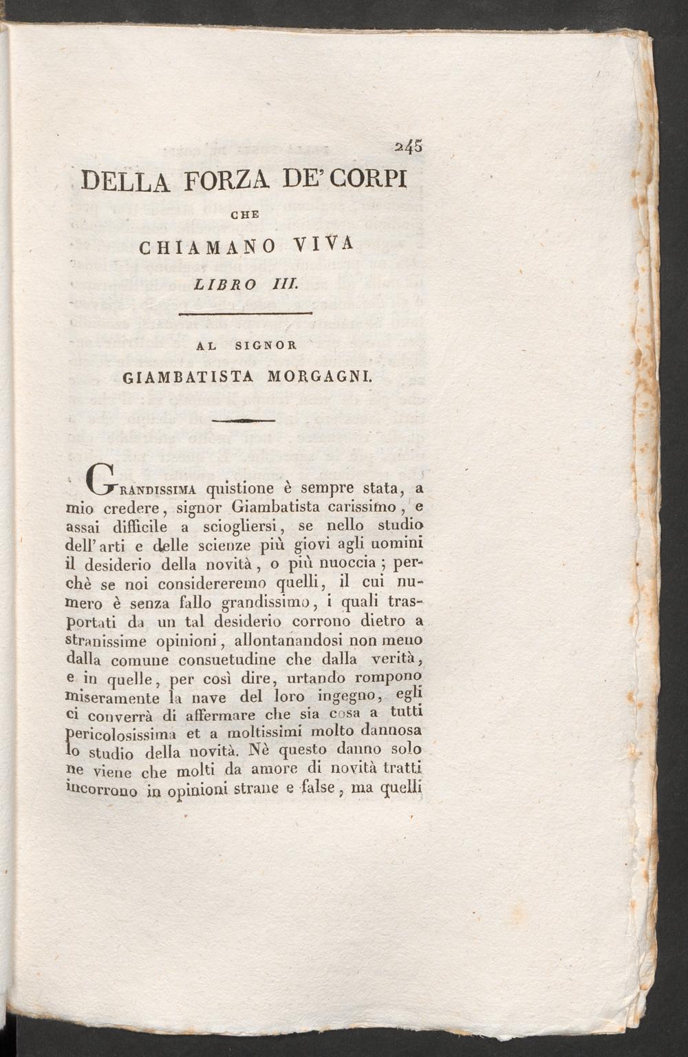 Della forza de' corpi che chiamano viva libri tre al signor Giambatista Morgagni.