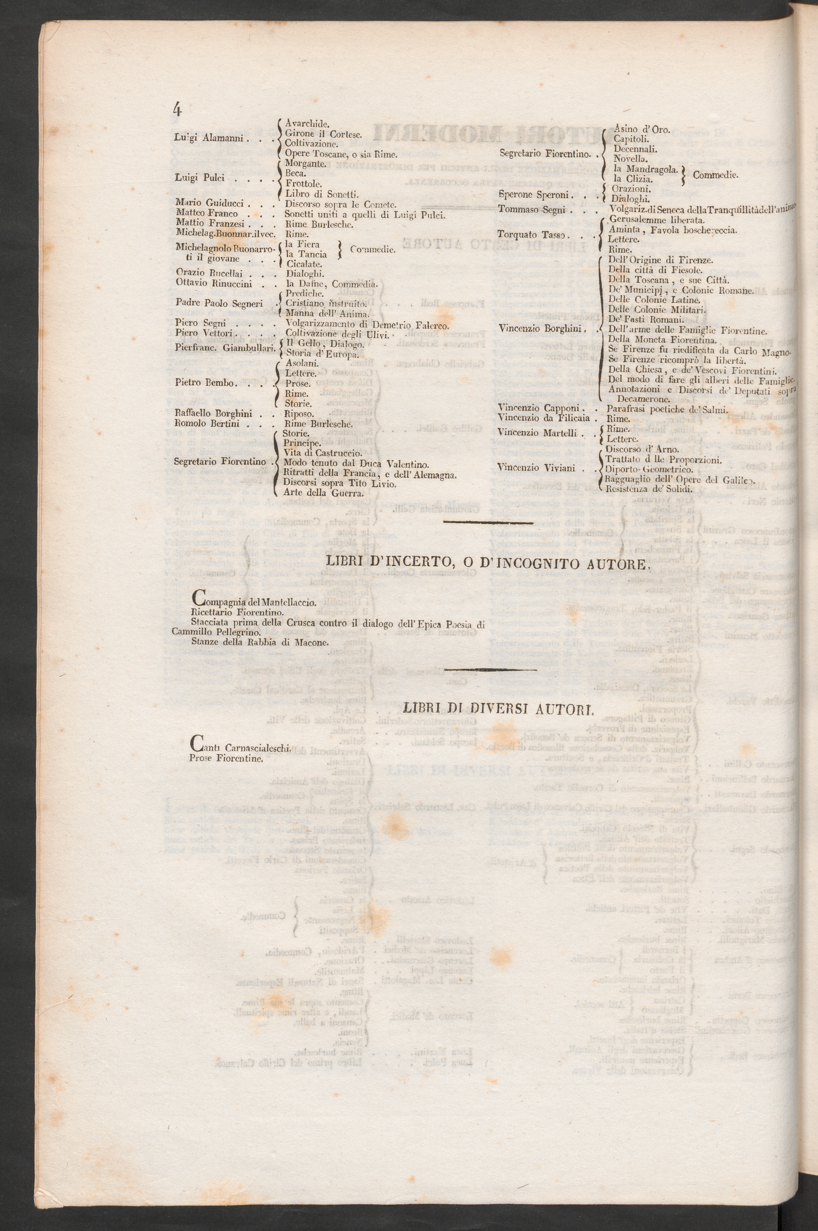 Autori o libri d' autori del buon secolo.