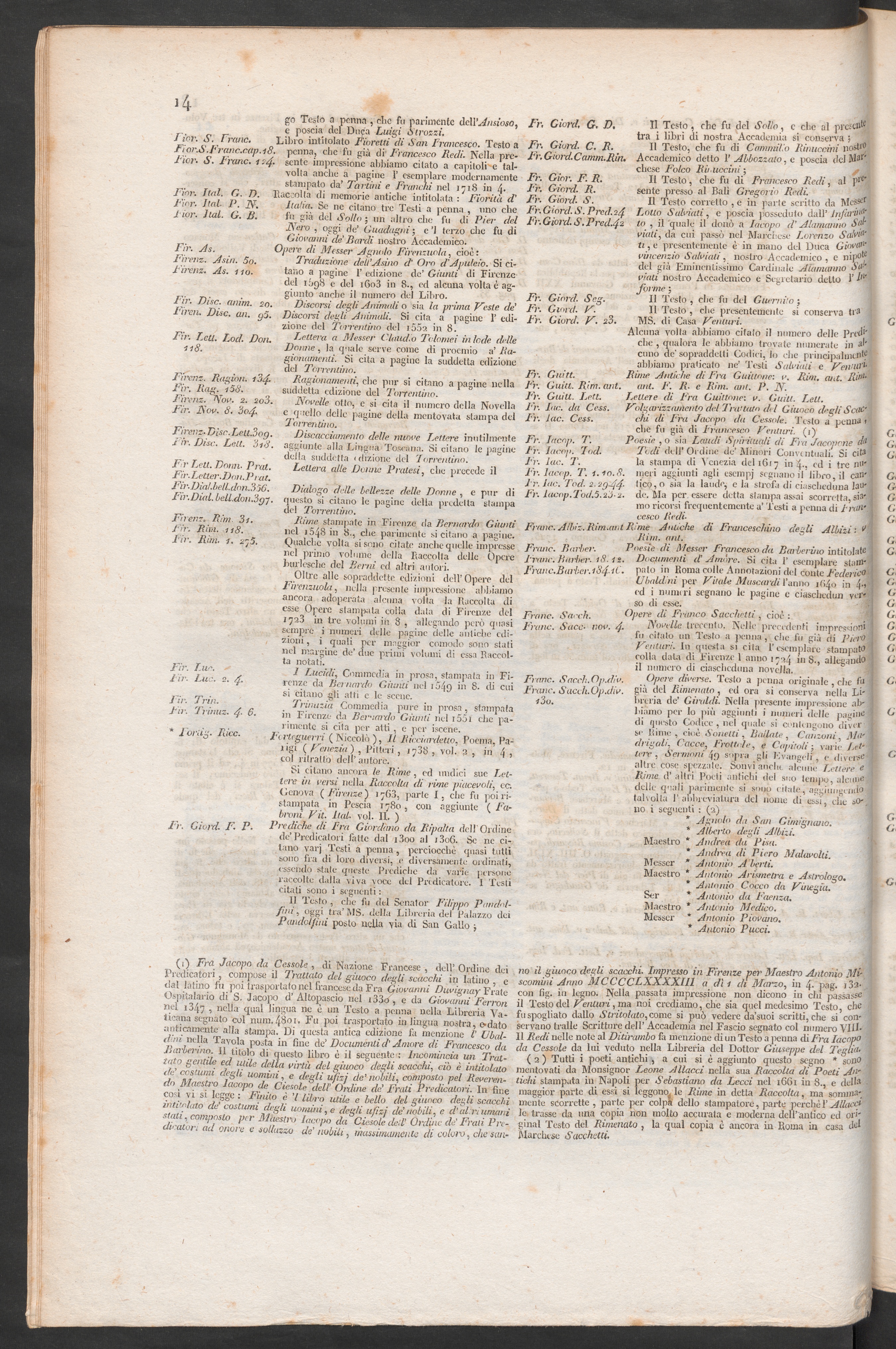 Indice delle abbreviature che dichiarano le opere e dizionarii da cui son tratti gli articoli aggiunti [...].