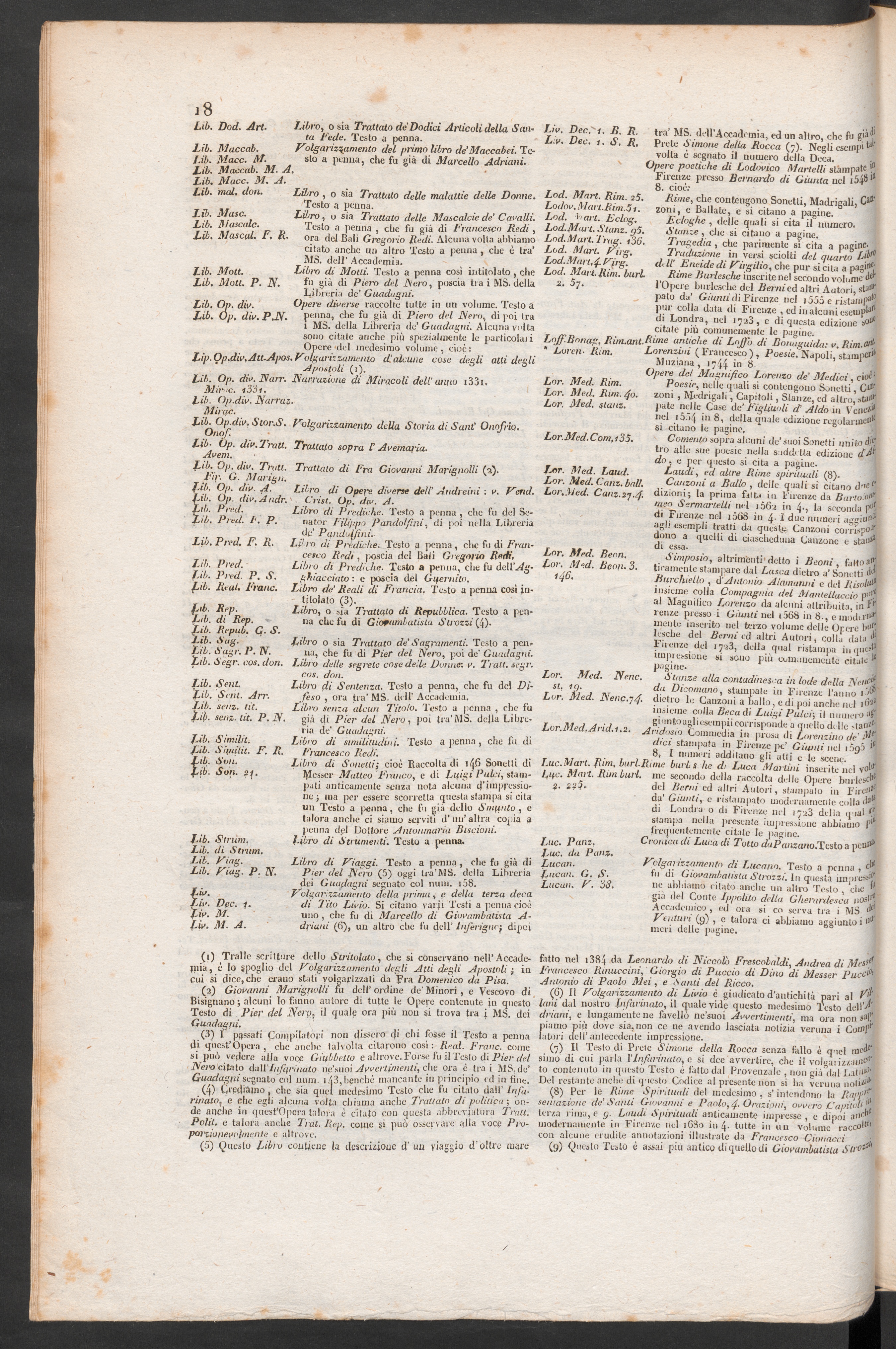 Indice delle abbreviature che dichiarano le opere e dizionarii da cui son tratti gli articoli aggiunti [...].