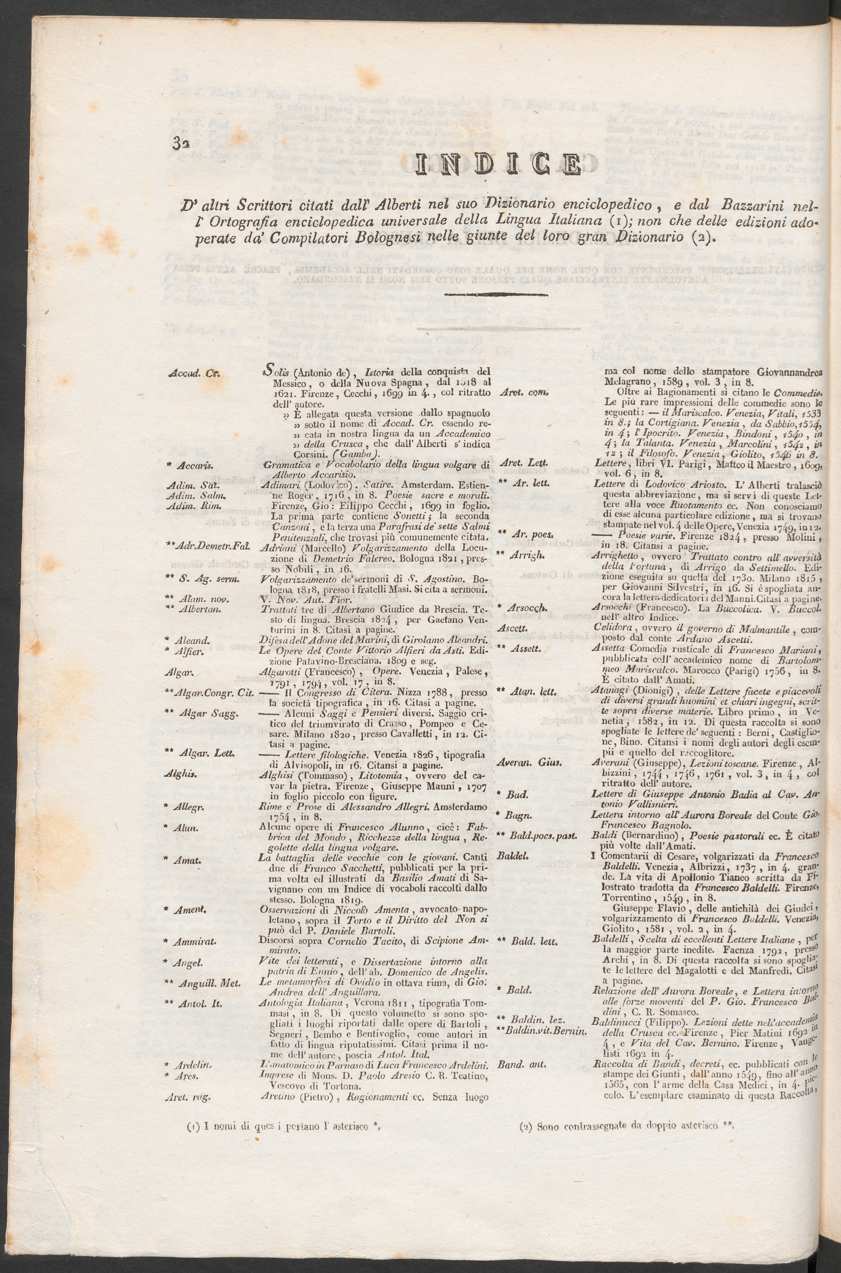 Indice d' altri scrittori citati dall' alberti nel suo dizionario enciclopedico, [...].