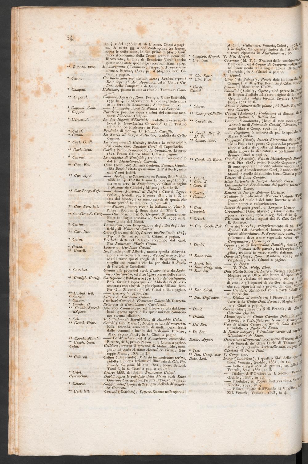 Indice delle abbreviature che dichiarano le opere e dizionarii da cui son tratti gli articoli aggiunti [...].