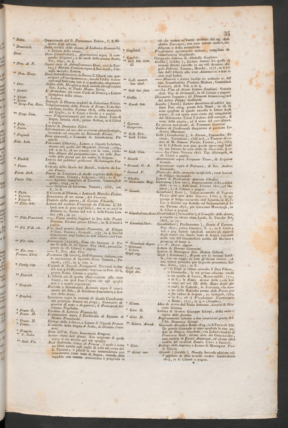 Indice delle abbreviature che dichiarano le opere e dizionarii da cui son tratti gli articoli aggiunti [...].