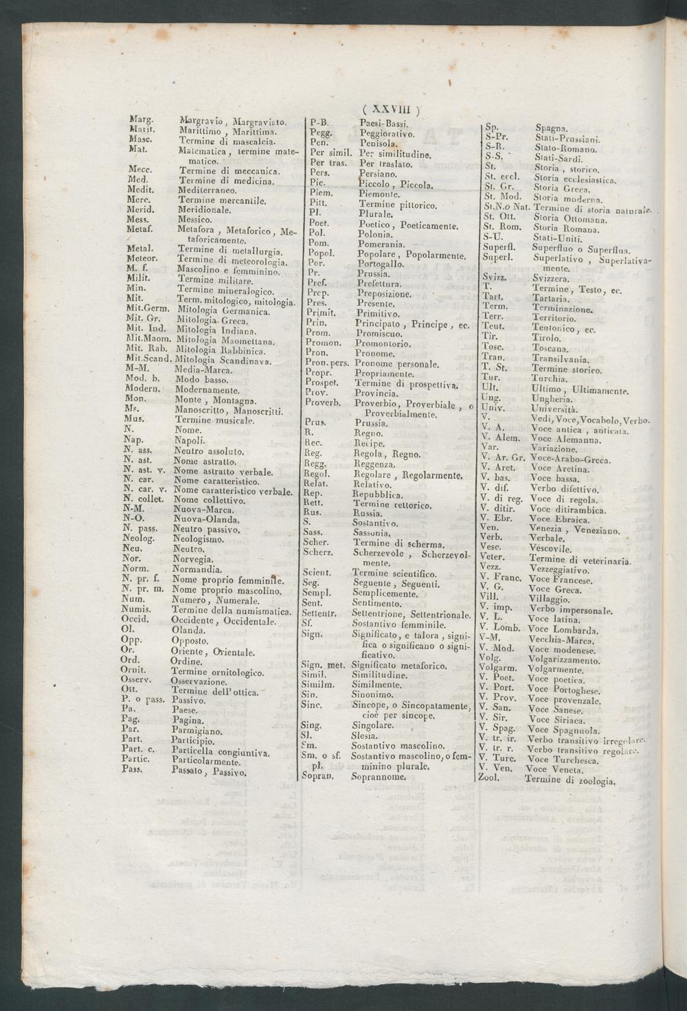 Indice delle abbreviature che dichiarano le opere e dizionarii da cui son tratti gli articoli aggiunti [...].