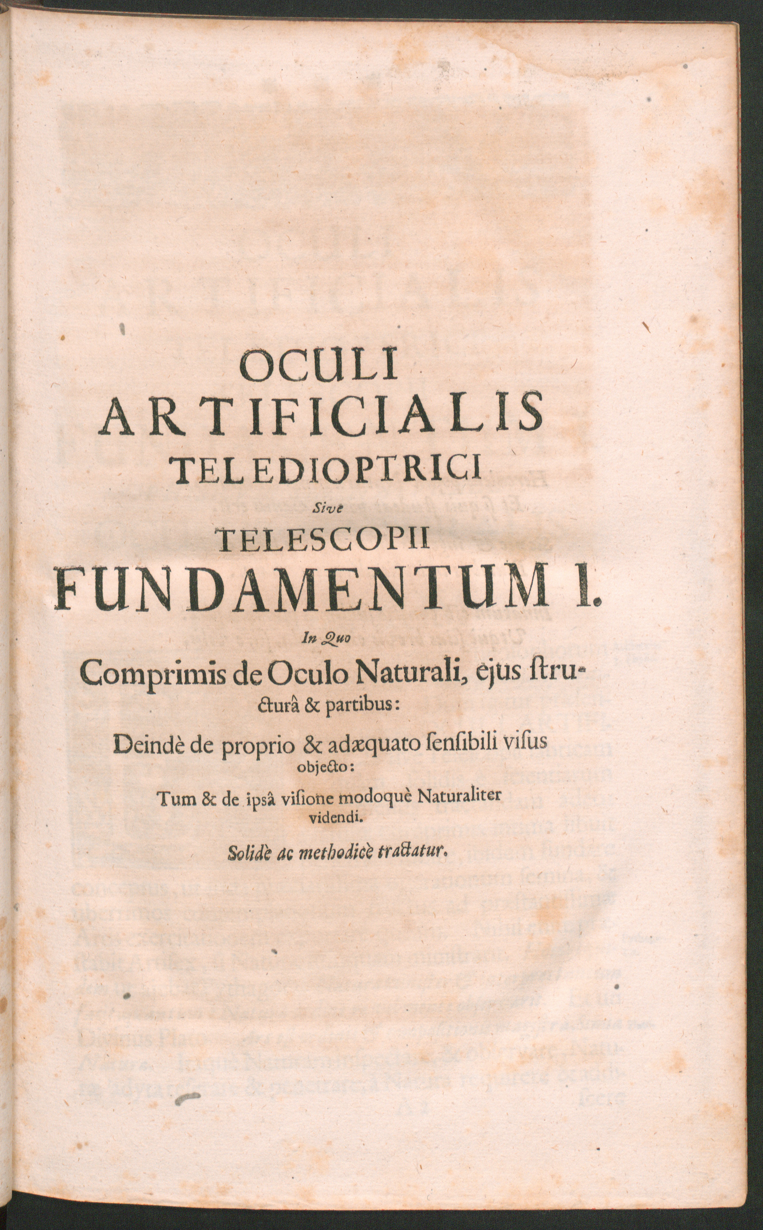 Oculus artificialis teledioptricus sive telescopium, ex abditis rerum naturalium &. artificialium principii protractum nova methodo, eaque solida explicatum ac comprimis e triplici fundamento physico seu naturali, mathematico dioptrico et mecanico, seu practico stabilitum ... / authore Joanne Zahn