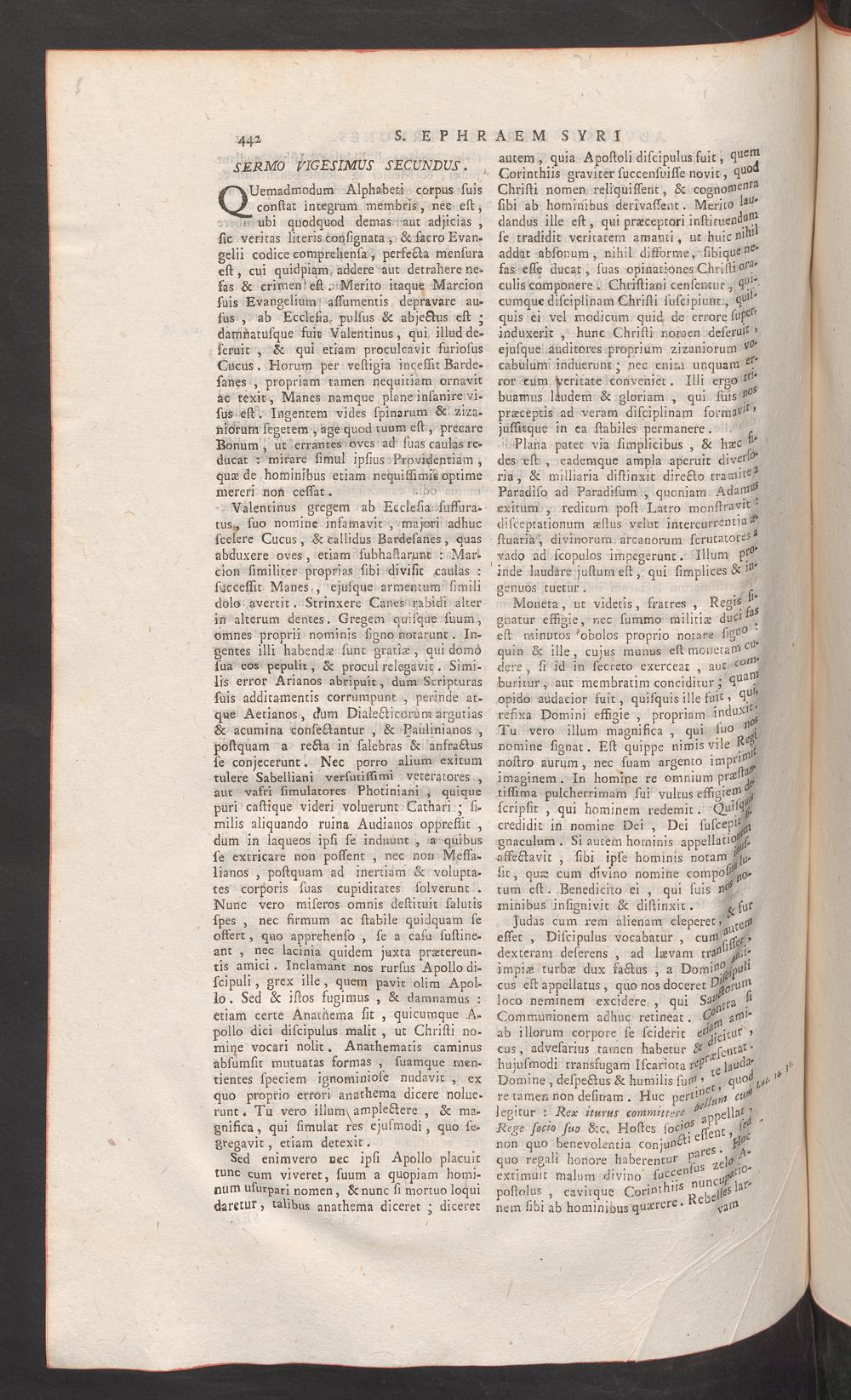 2 (1756) Commentarios in sacram scripturam, sermones, & cetera omnia, quae in tribus tomis Syriaco-Latinis Editionis Romanae continentur : cum brevi indice alphabetico materiarum, qui in Romana Editione desideratur : accedit R.P Petri Benedicti antirrheticon duplex de eucharistiae sacramento, alterum adversus Jo. Kohlium, alterum adversus R.P. Le Brunum & Euseb. Renaudotium / [Ephraem der Syrer]