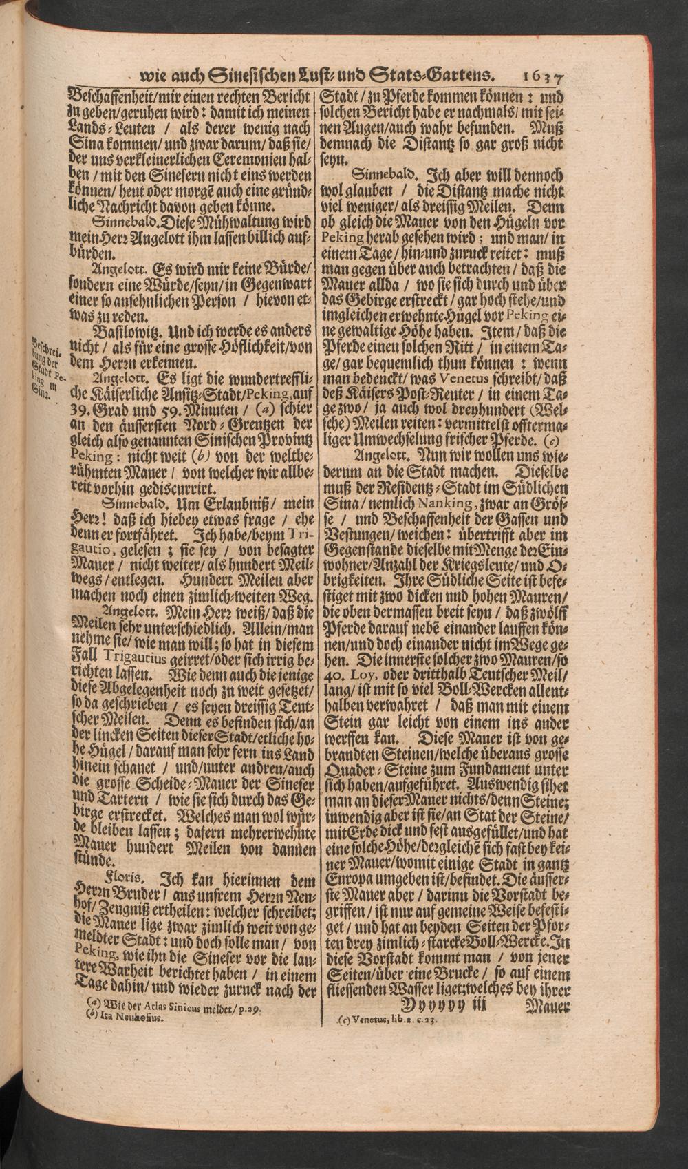 Erasmi Francisci Ost- und West-Indischer wie auch Sinesischer Lust- und Stats- Garten, mit einem Vorgespräch von mancherley lustigen Discursen : in drey Haupt-Theile unterschieden. Der erste Theil begreifft in sich die edelsten Blumen, Kräuter, Bäume ... und Specereyen ... der ander Theil das Temperament der Lufft und Landschafften daselbst; die Beschaffenheit der Felder, Wälder, Wüsteneyen, die berühmten natür- und künstliche Berge ... der dritte Theil das Stats-Wesen, Policey-Ordnungen, Hofstäte, Paläste denckwürdige Kriege ... aus den fürnemsten, alten und neuen, indianischen Geschicht-Land- und Reisbeschreibungen ... eingerichtet
