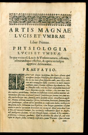 Athanasii Kircheri ... Ars magna lucis et umbrae, in decem libros digesta : quibus admirandae lucis et umbrae in mundo, atque adeò universa natura, vires effectusque uti nova, ita varia novorum reconditiorumque speciminum exhibitione, ad varios mortalium usus, panduntur ...