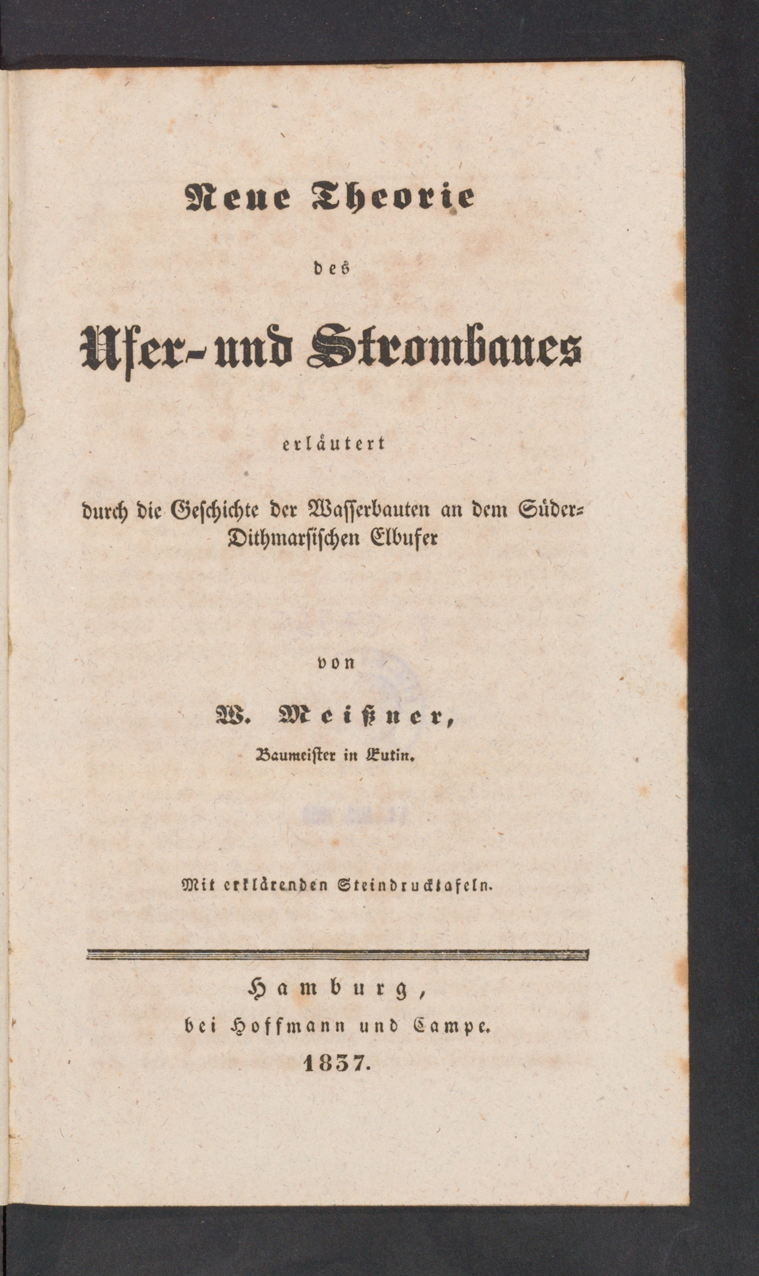 Neue Theorie des Ufer- und Strombaues : erläutert durch die Geschichte der Wasserbauten an dem Süder-Dithmarsischen Elbufer / von W. Meissner