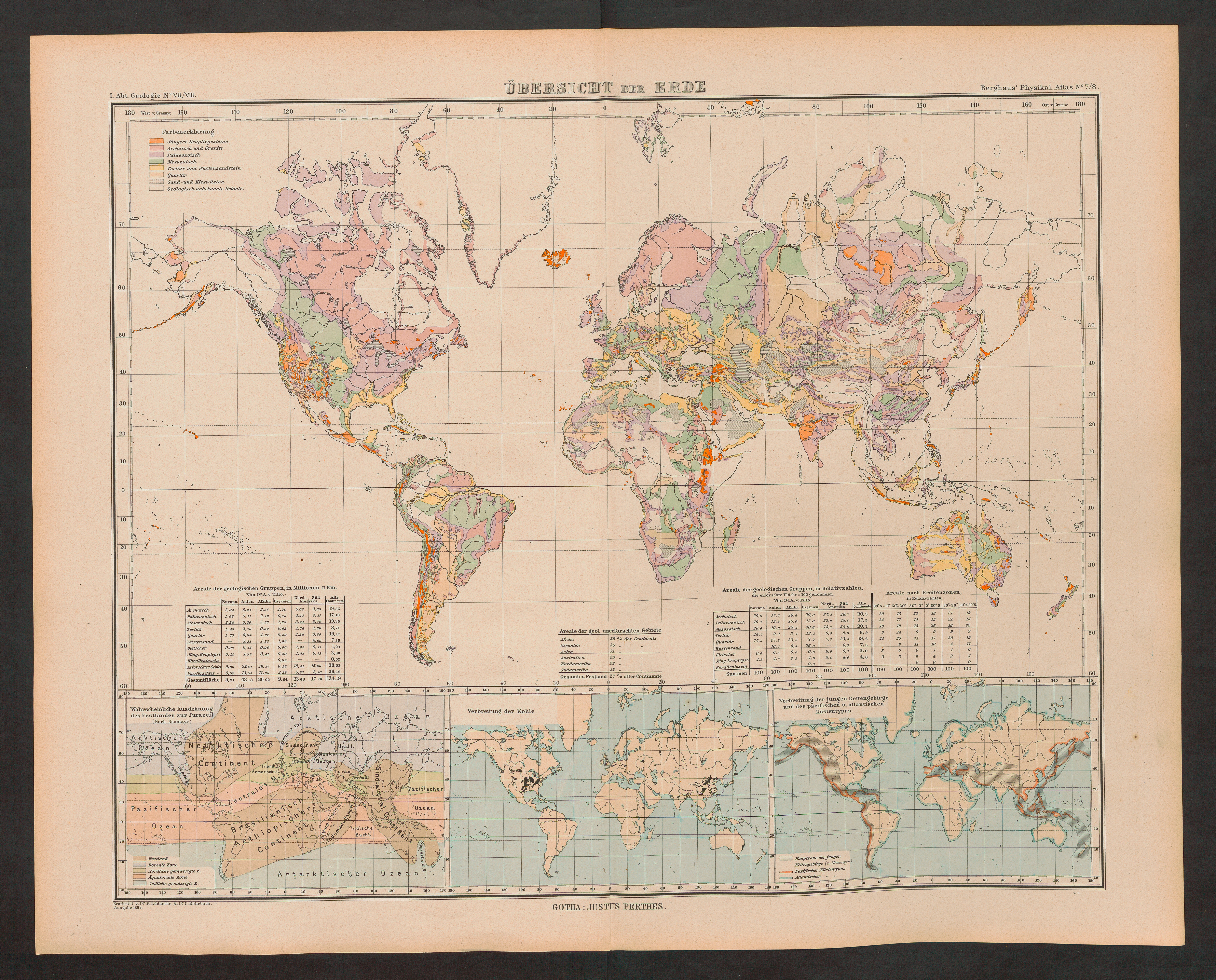 Atlas der Geologie : 15 kolorierte Karten in Kupferstich mit 150 Darstellungen / unter beratender Mitwirkung von Prof. Dr. K. v. Zittel bearbeitet von Dr. Hermann Berghaus, Professor in Gotha