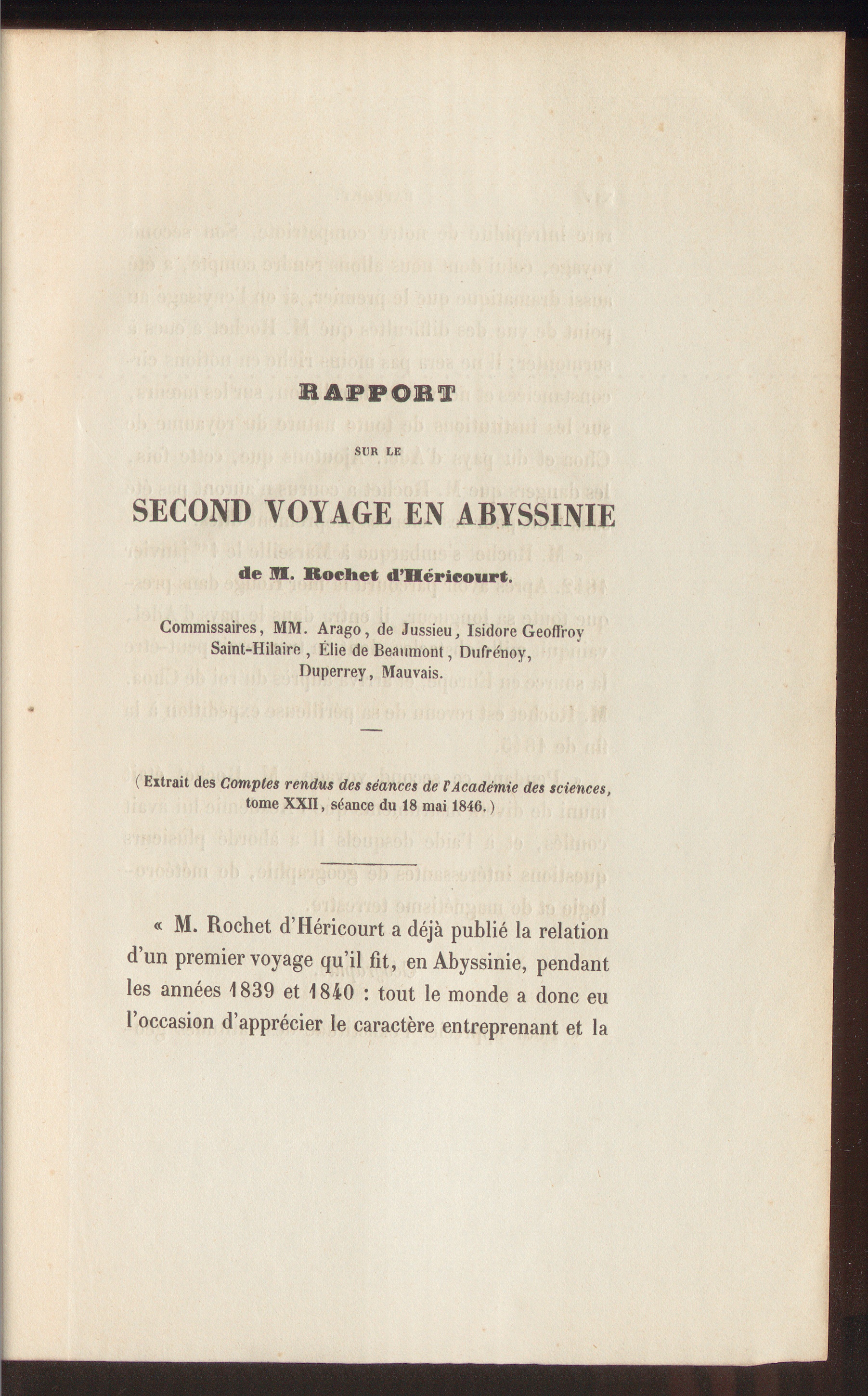 Second voyage sur les deux rives de la mer Rouge dans le pays des Adels et le royaume de Choa / par M. Rochet d' Héricourt