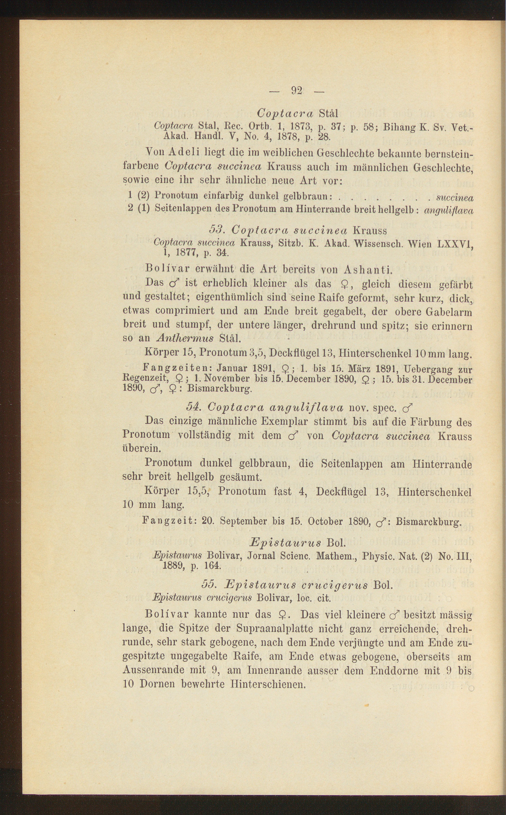Die Insecten der Berglandschaft Adeli im Hinterlande von Togo (Westafrika) : nach dem von den Herren Eugen Kling (1888 und 1889) und Dr. Richard Büttner (1890 und 1891) gesammelten Materiale : I. Abtheilung: Apterygota, Odonata, Orthoptera Saltatoria, Lepidoptera Rhopalocera / bearbeitet von Dr. F. Karsch, mit einem Vorworte von Dr. Richard Büttner