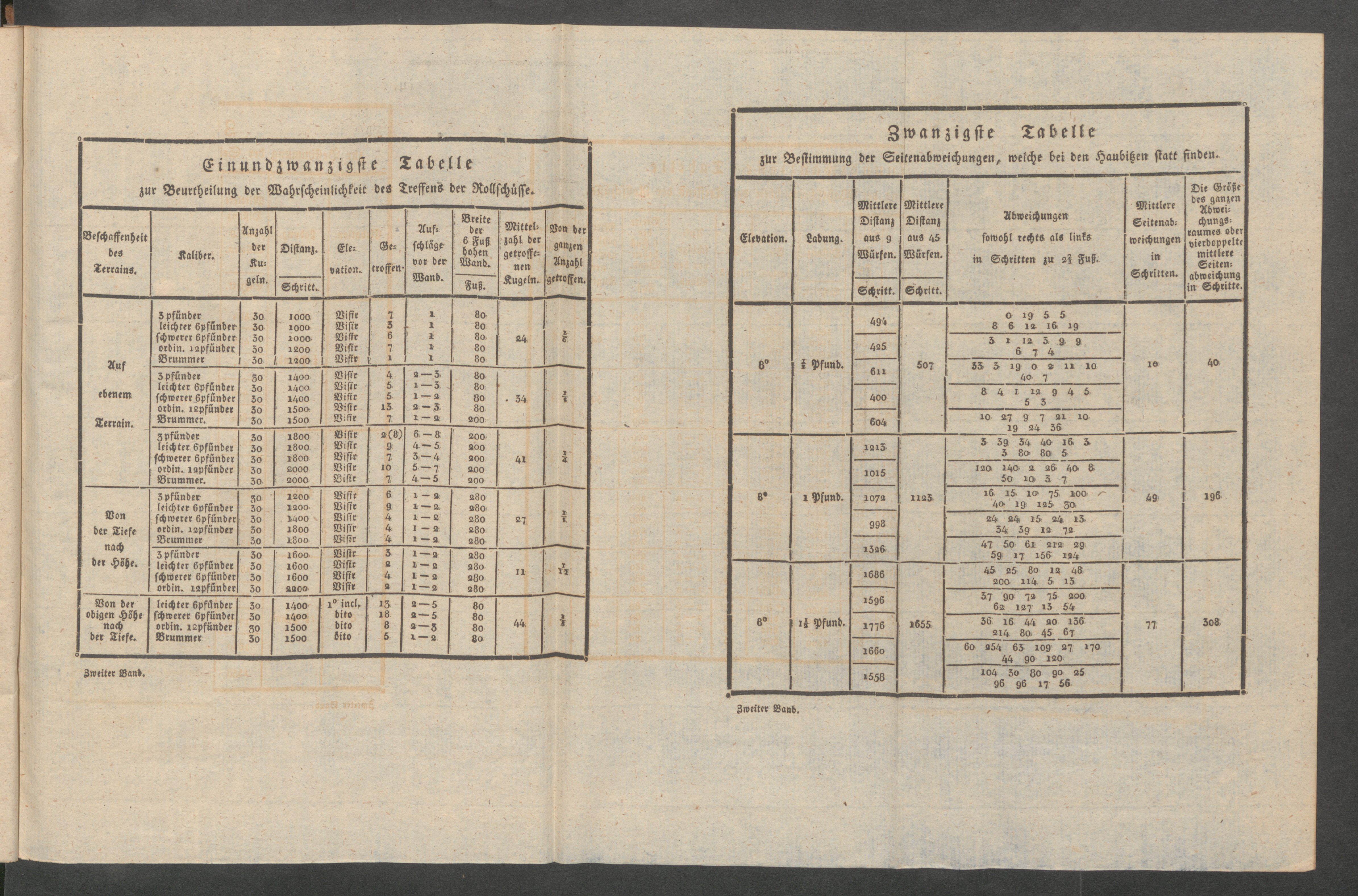 2 (1822) Zweiter Band welcher einen Nachtrag zum ersten Bande, die Lehre über die Kugelbahn und Wahrscheinlichkeit des Treffens, und ferner eine Abhandlung über die Artillerie der englischen Marine und einige Nachrichten über die preussische Artillerie enthält / von Carl Friedrich Borkenstein