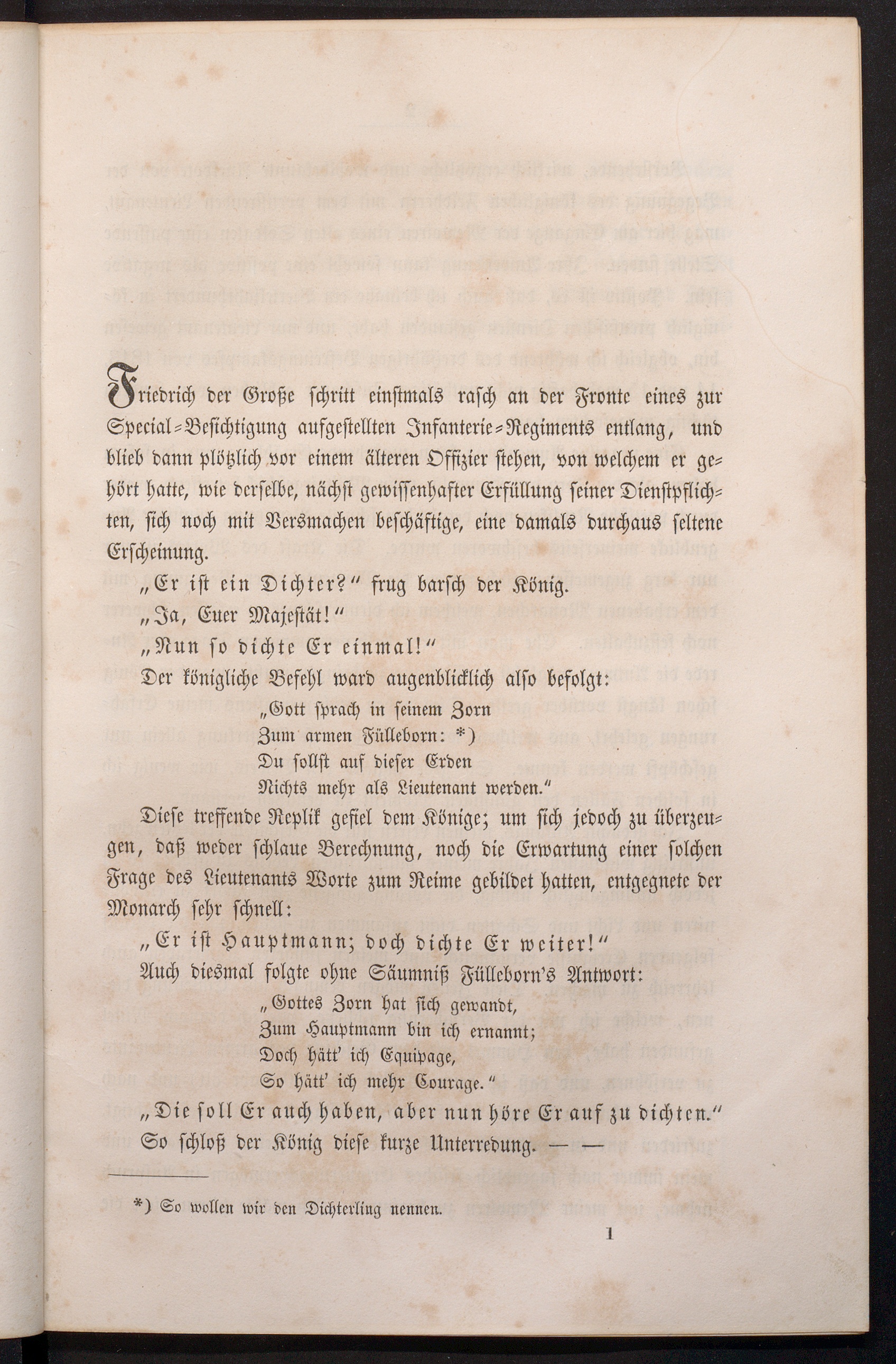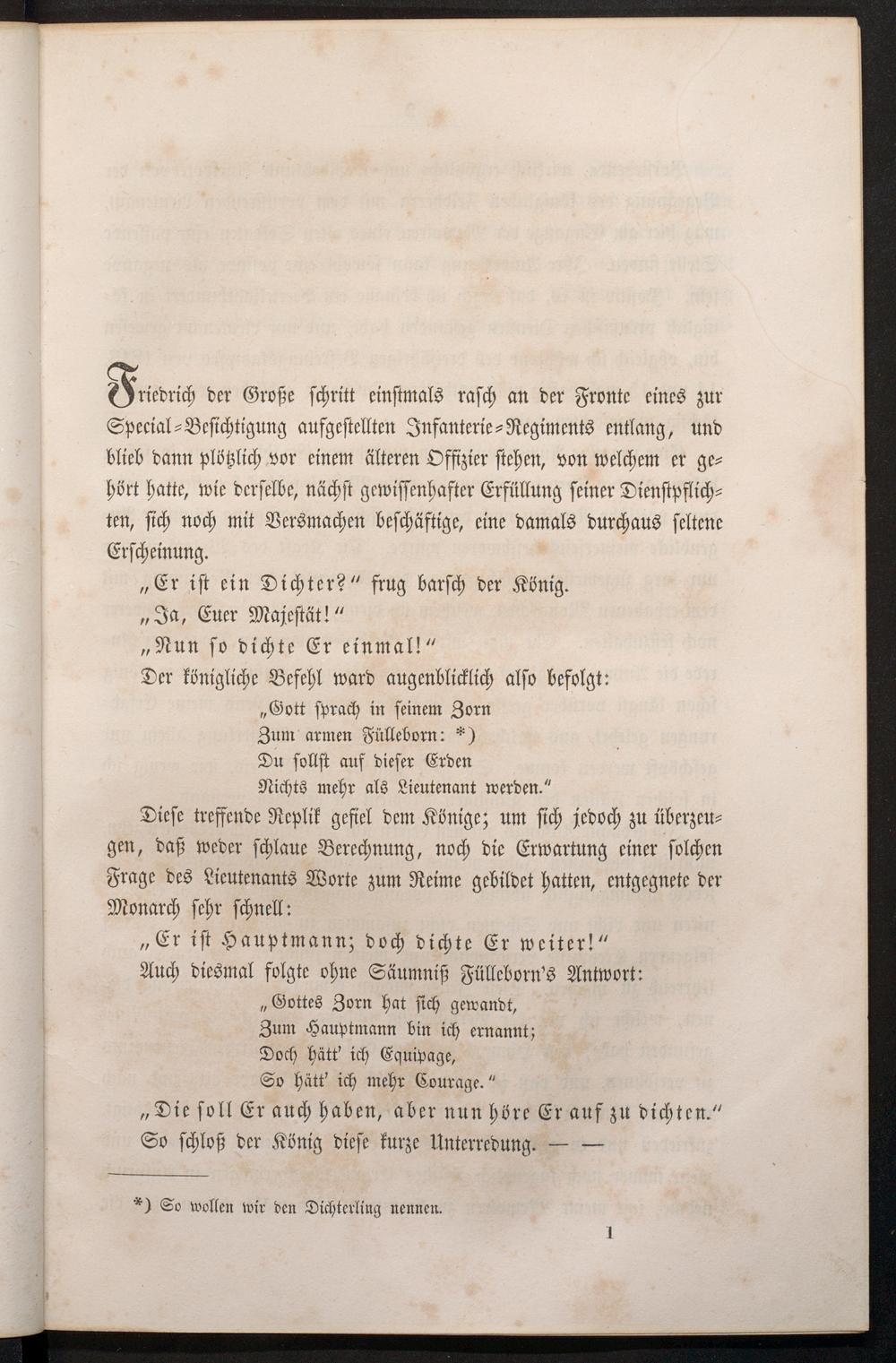 Friedrich der Grosse schritt einstmals rasch an der Fronte eines zur Special-Besichtigung ausgestellten Infanterie Regiments entlang, [...].
