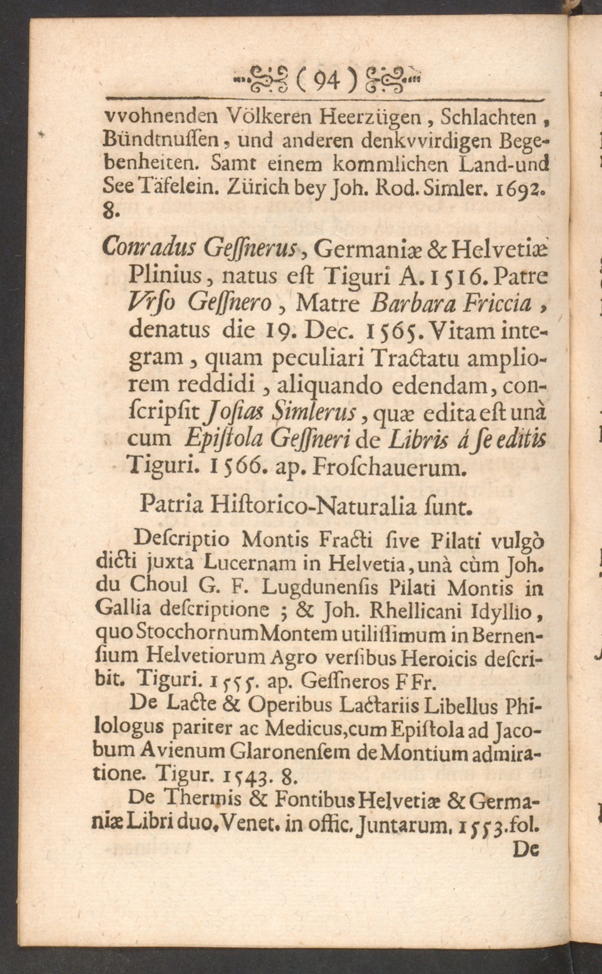 Bibliotheca scriptorum historiae naturali omnium terrae regionum inservientium : Historiae naturalis Helvetiae prodromus. accessit celeberrimi viri Jacobi Le Long, Bibliothecarii oratoriani de scriptoribus historiae naturalis Galliae ; collegit Joh. Jacobus Scheuchzer, Med. D. Math. Prof. Societ. Leopoldino-Carolinae, Regiae Angl. & Boruss