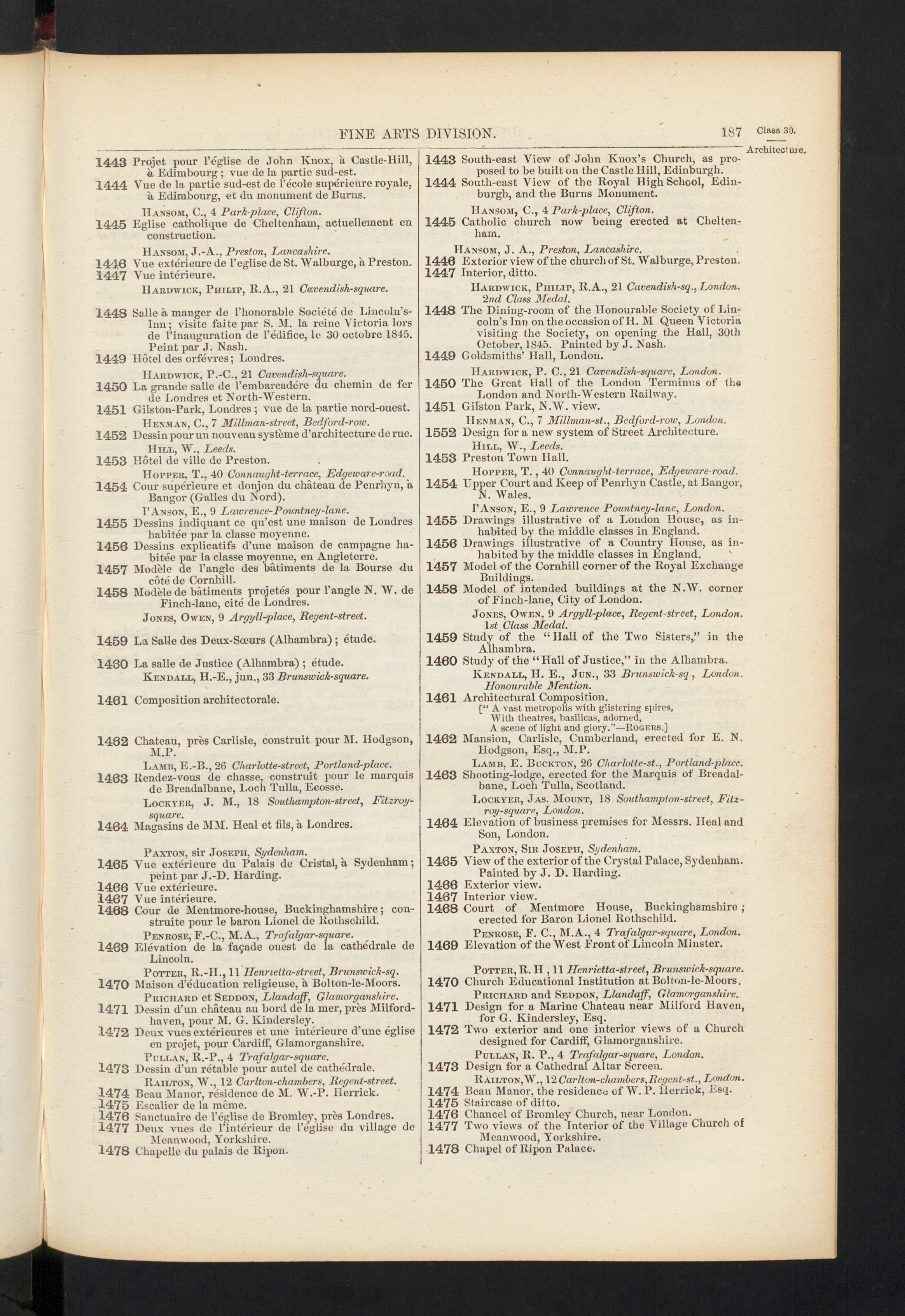 Paris Universal Exhibition 1855 : catalogue of the works exhibited in the British section of the exhibition : with notices of the commercial progress of the United Kingdom, under the respective classes : in French and English / published by [Royal] Authority