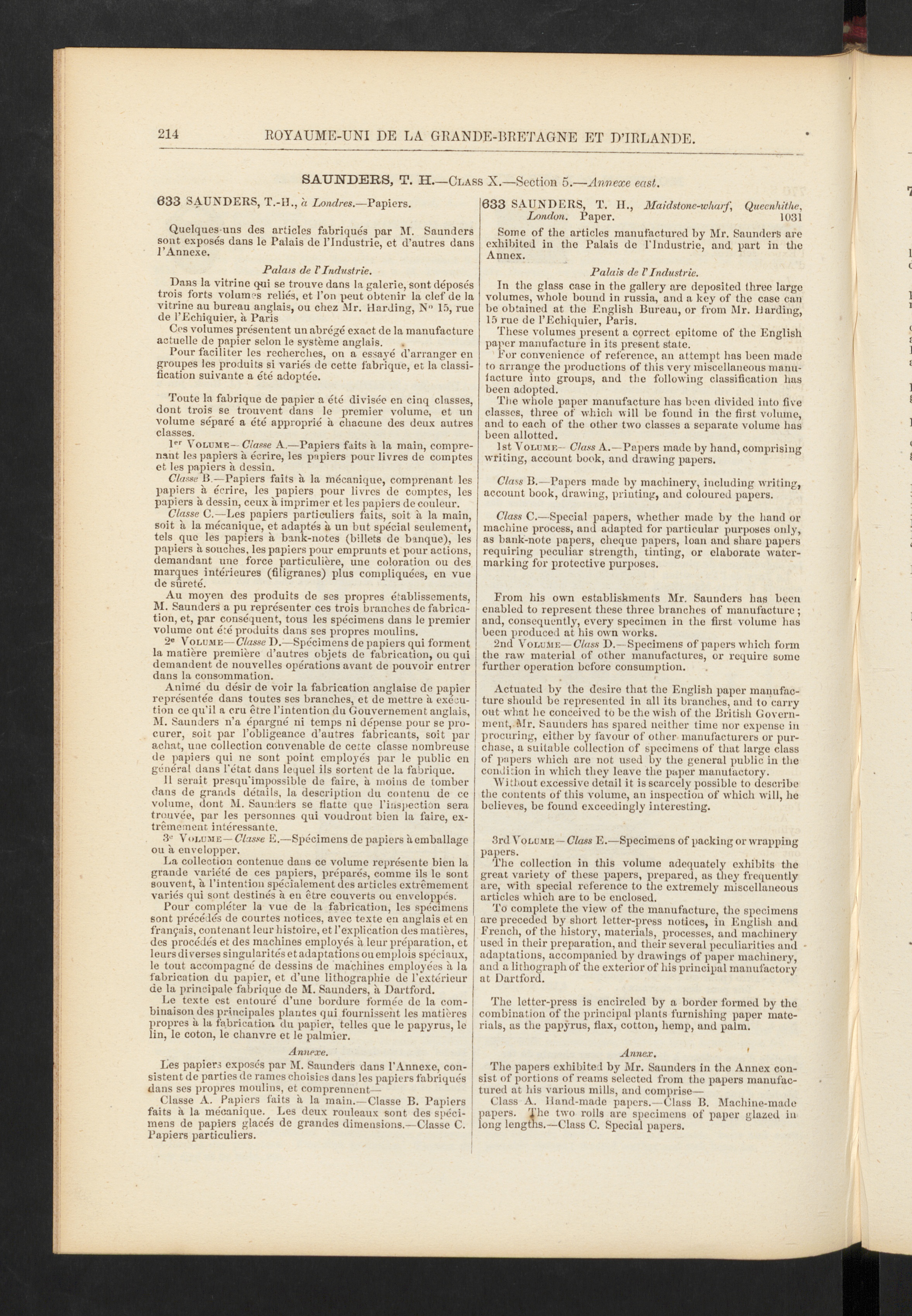 Paris Universal Exhibition 1855 : catalogue of the works exhibited in the British section of the exhibition : with notices of the commercial progress of the United Kingdom, under the respective classes : in French and English / published by [Royal] Authority