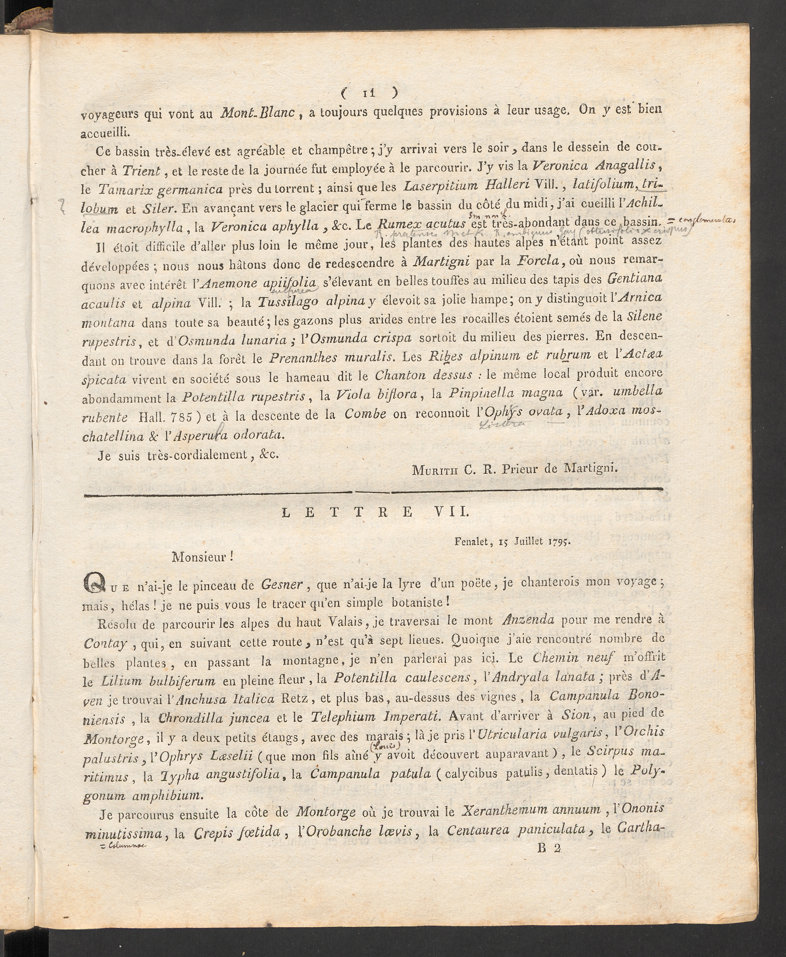 Le guide du botaniste qui voyage dans le Valais, avec un catalogue des plantes de ce pays et de ses environs, auquel on a joint les lieux de naissance et l'époque de la fleuraison pour chaque espèce / par M. Murith