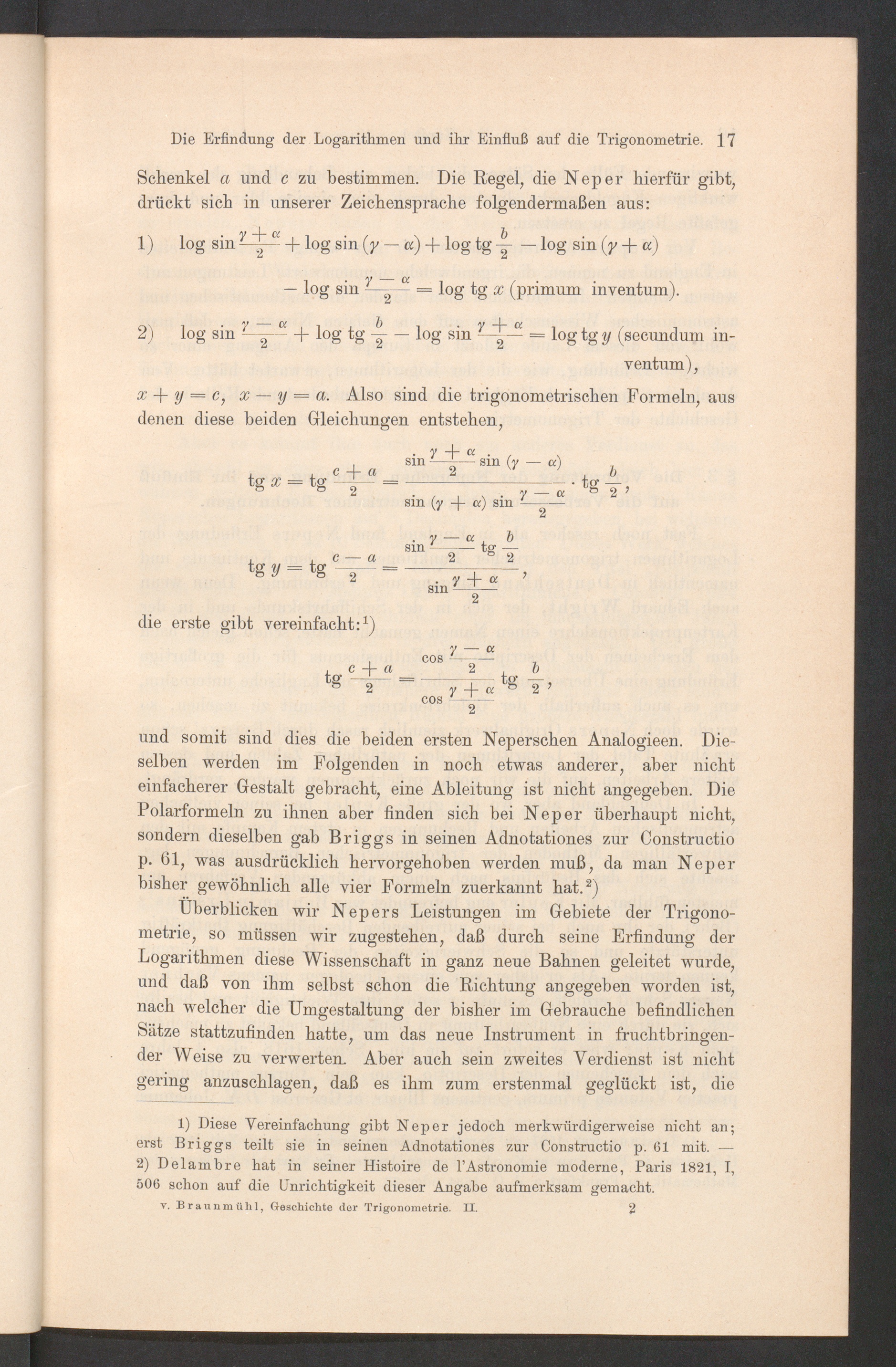 Zweiter Teil. Von der Erfindung der Logarithmen bis auf die Gegenwart / von Dr. A. von Braunmühl