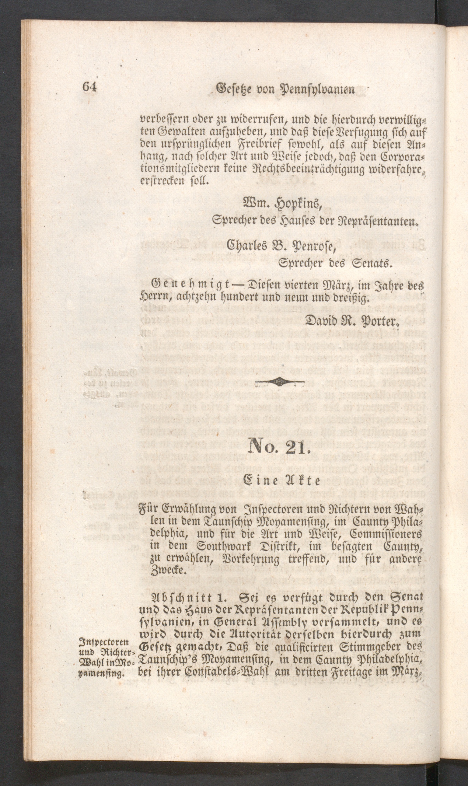 Gesetze der General-Assembly von der Republik Pennsylvanien : passiert in der Sitzung von 1838-39, im drei und sechzigsten Jahre der Unabhängigkeit