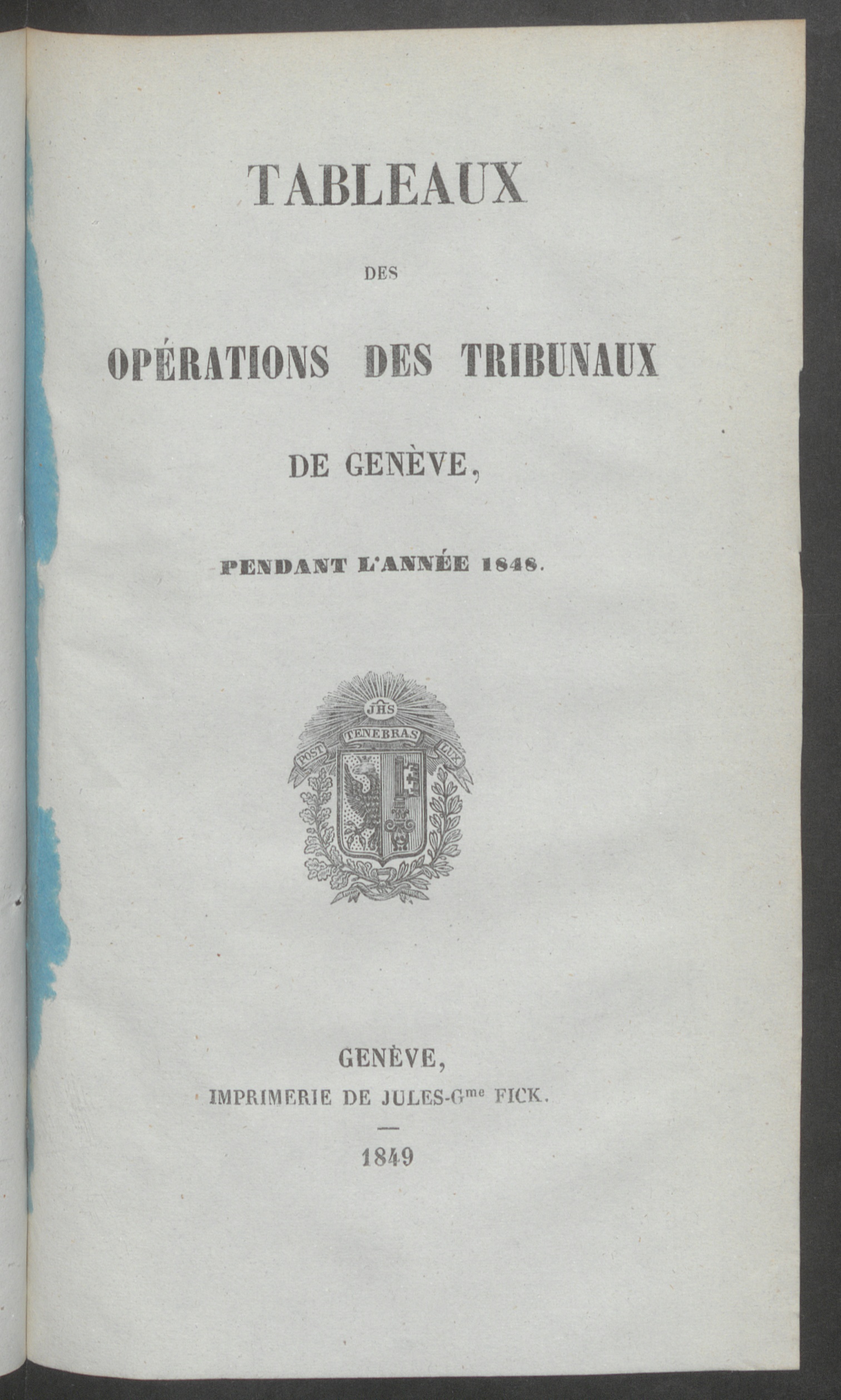 Tableaux des opérations des tribunaux de Genève pendant l'année 1848