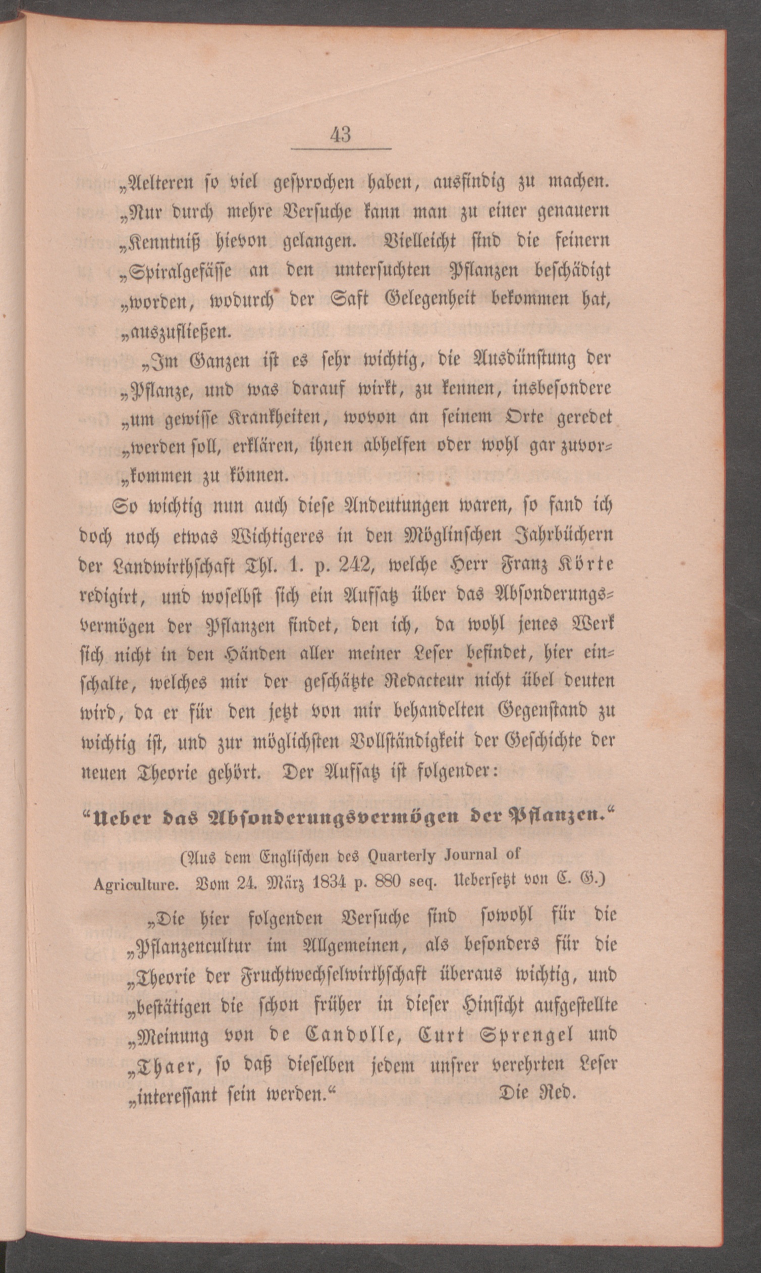Die Bodenvergiftung durch die Wurzel-Ausscheidungen der Pflanzen als vorzüglichster Grund für die Pflanzen-Wechsel-Wirthschaft / von Justus Ludewig von Uslar