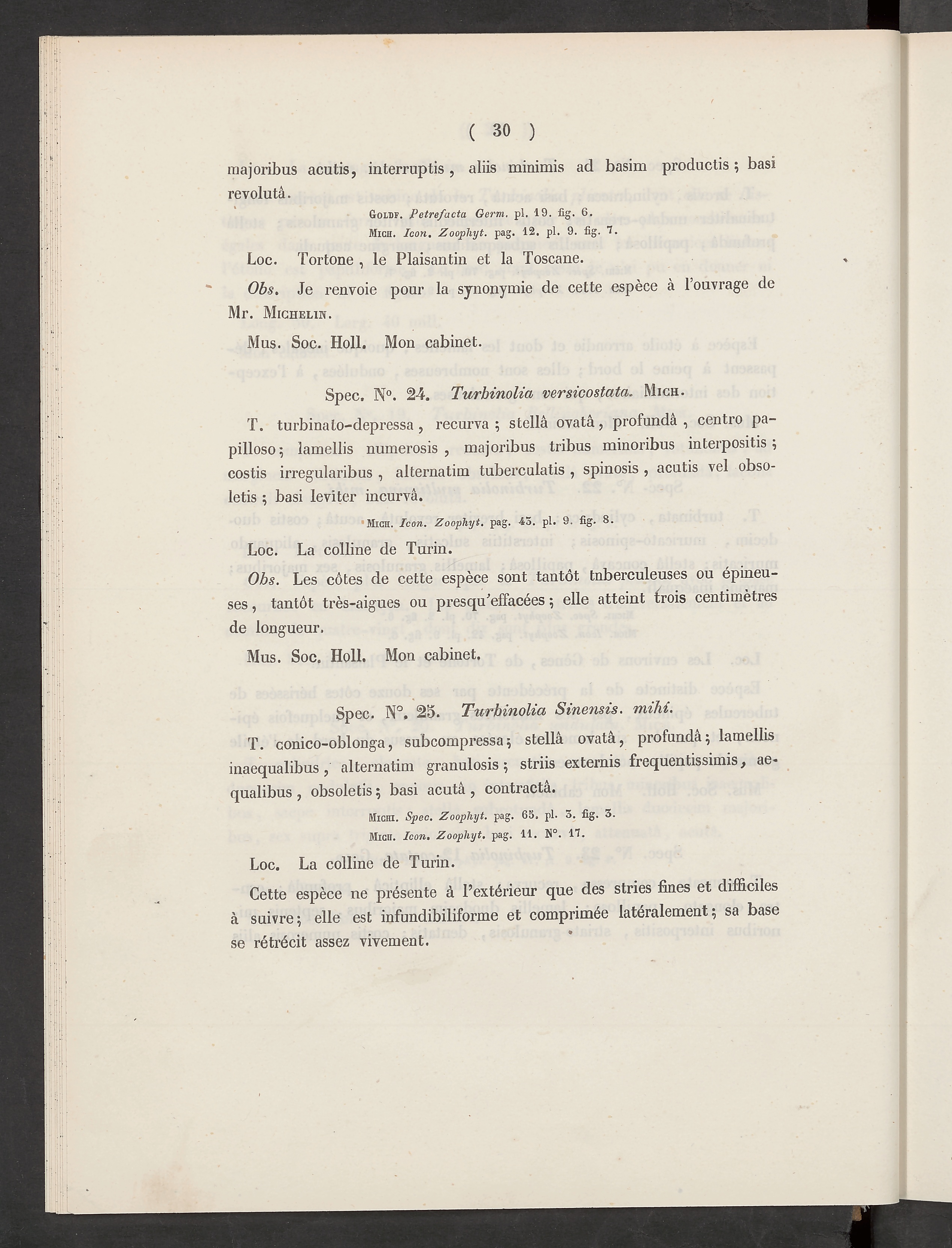 Déscription des fossiles des terrains miocènes de l'Italie septentrionale : ouvrage publié par la Société Hollondaise des Sciences et accompagné d'un atlas de 17 planches / par G. Michelotti