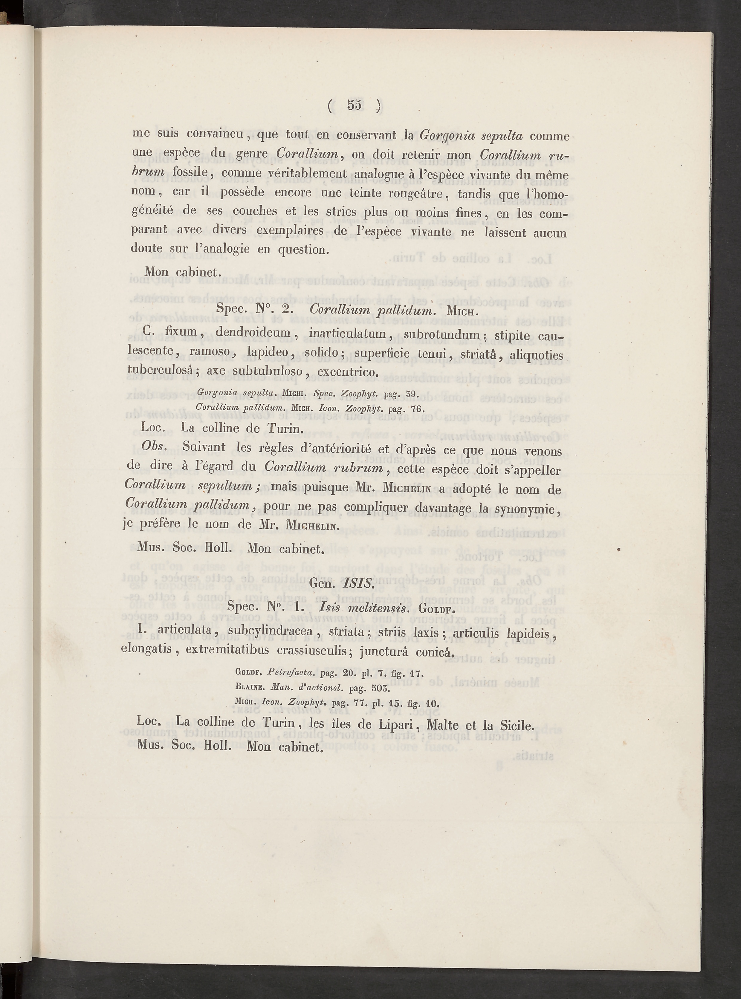 Déscription des fossiles des terrains miocènes de l'Italie septentrionale : ouvrage publié par la Société Hollondaise des Sciences et accompagné d'un atlas de 17 planches / par G. Michelotti