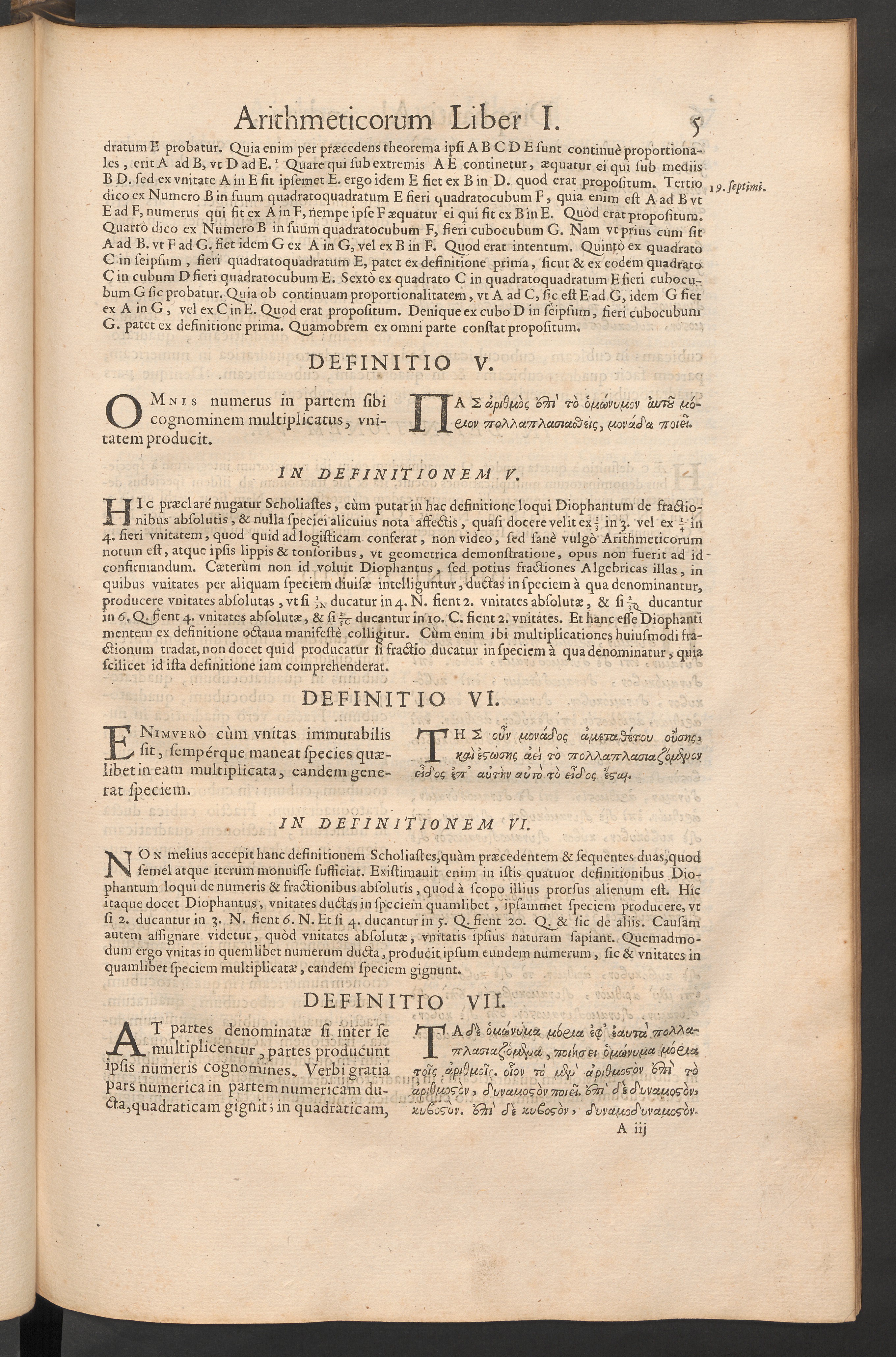 Diophanti Alexandrini Arithmeticorum libri sex et de numeris multangulis liber unus : cum commentariis C. G. Bacheti ... & observationibus .. de Fermat ...; accessit doctrinae analyticae inventum novum collectum ex varijs eiusdem ... de Fermat epistolis