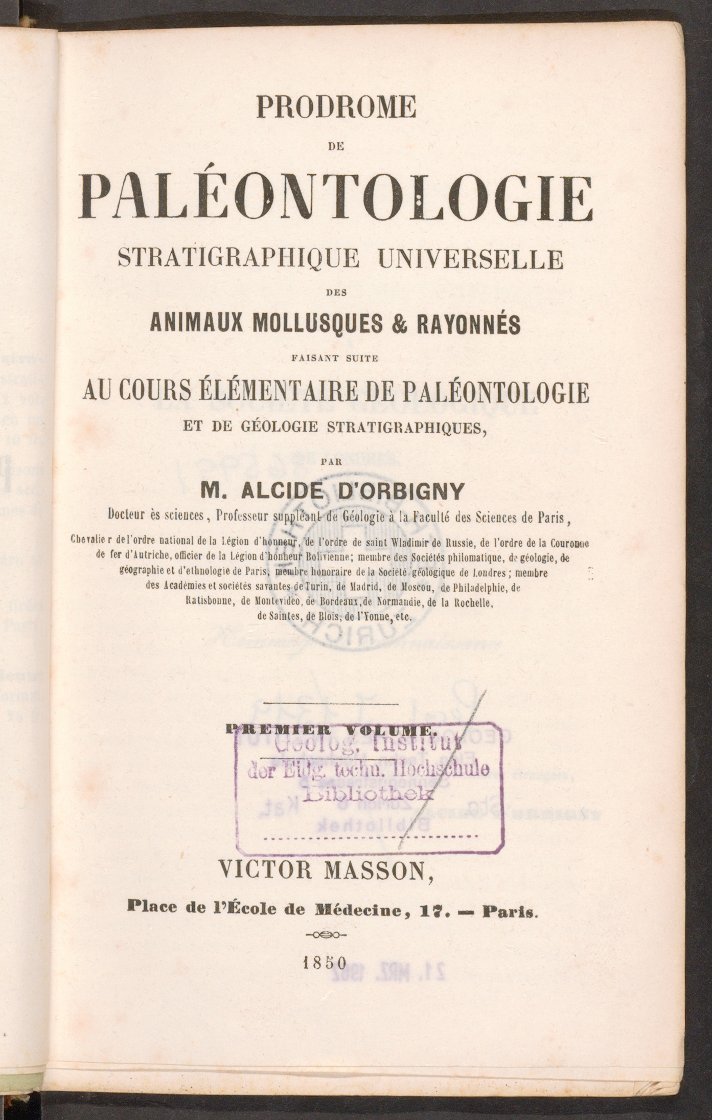 Prodrome de paléontologie stratigraphique universelle des animaux mollusques & rayonnés : faisant suite au cours élémentaire de paléontologie et de géologie stratigraphiques / par Alcide d'Orbigny