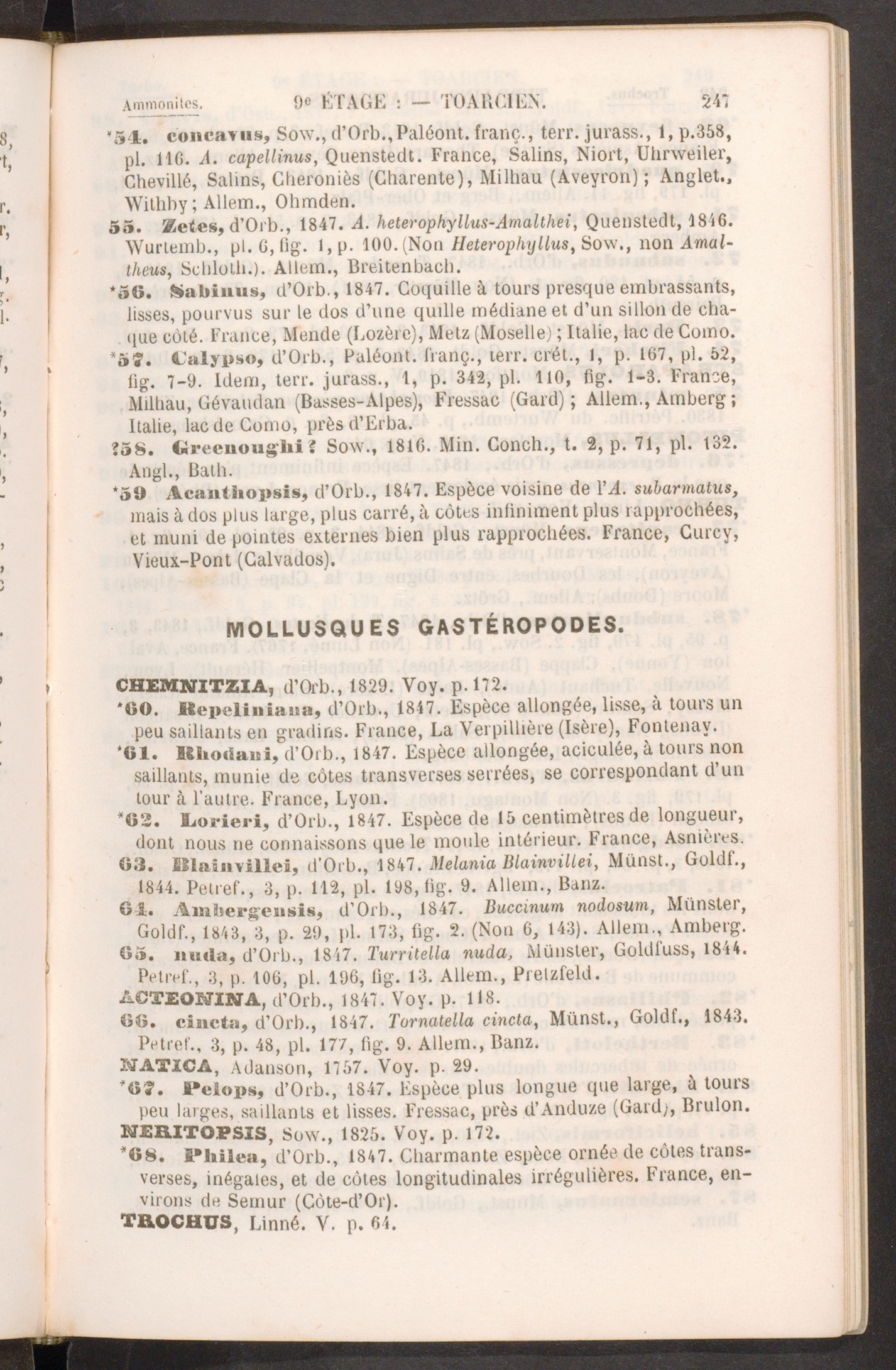 Prodrome de paléontologie stratigraphique universelle des animaux mollusques & rayonnés : faisant suite au cours élémentaire de paléontologie et de géologie stratigraphiques / par Alcide d'Orbigny