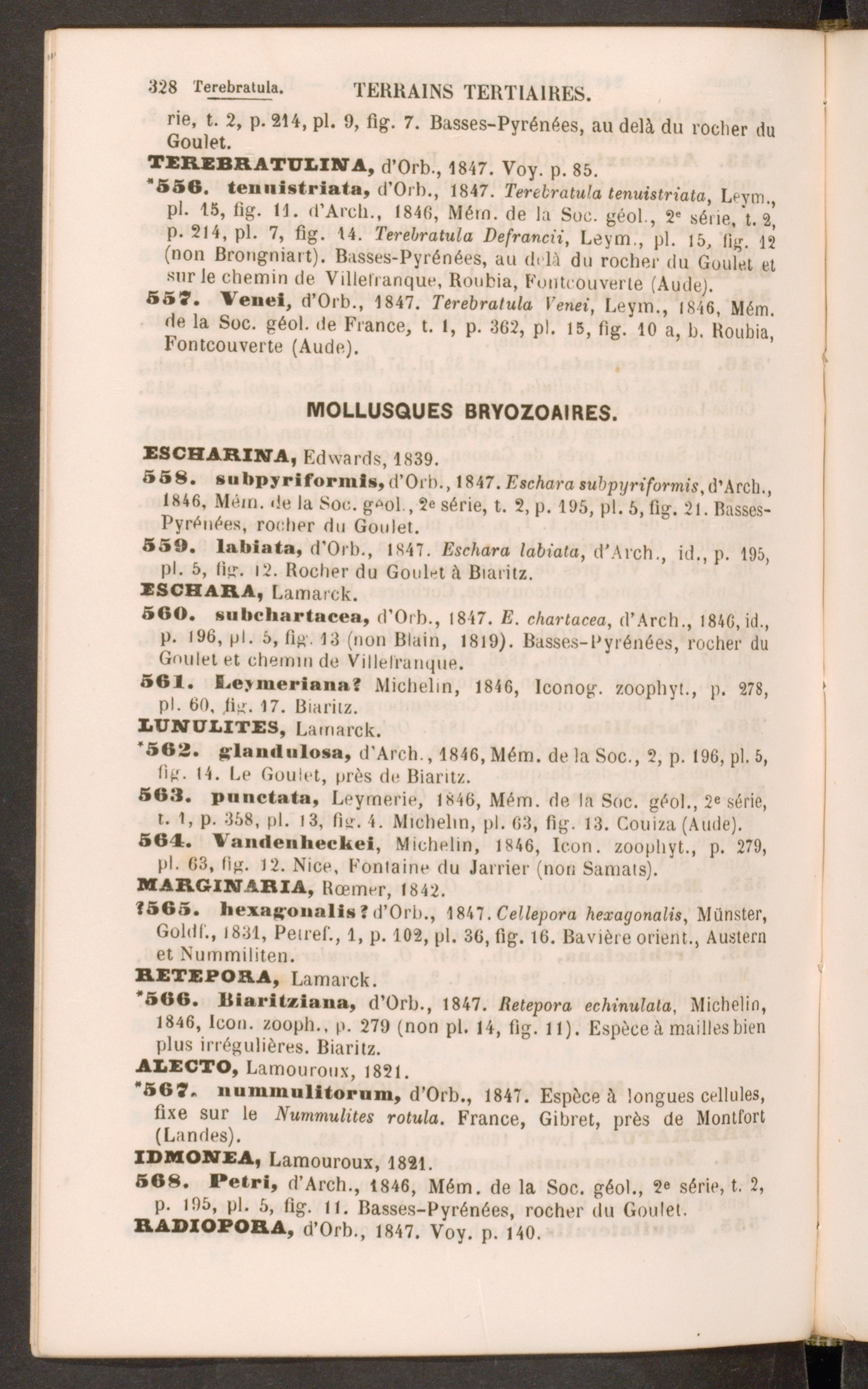 Prodrome de paléontologie stratigraphique universelle des animaux mollusques & rayonnés : faisant suite au cours élémentaire de paléontologie et de géologie stratigraphiques / par Alcide d'Orbigny