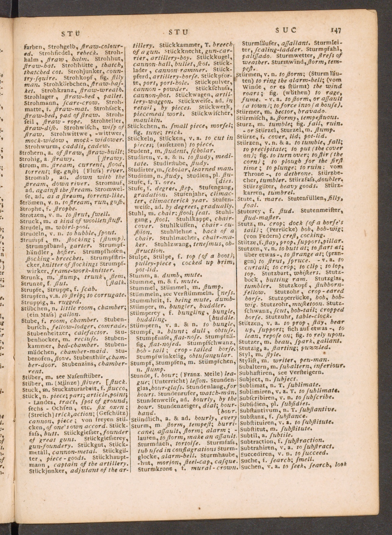 The new pocket-dictionary of the English and German languages : composed chiefly after the dictionaries of Johnson, Adelung, and others of the best authorities; in which the parts of speech and the genders of the german nouns, ar properly distinguished; each word accented according to it's just and natural pronunciation; and the irregularities of the english and german verbs duly marked