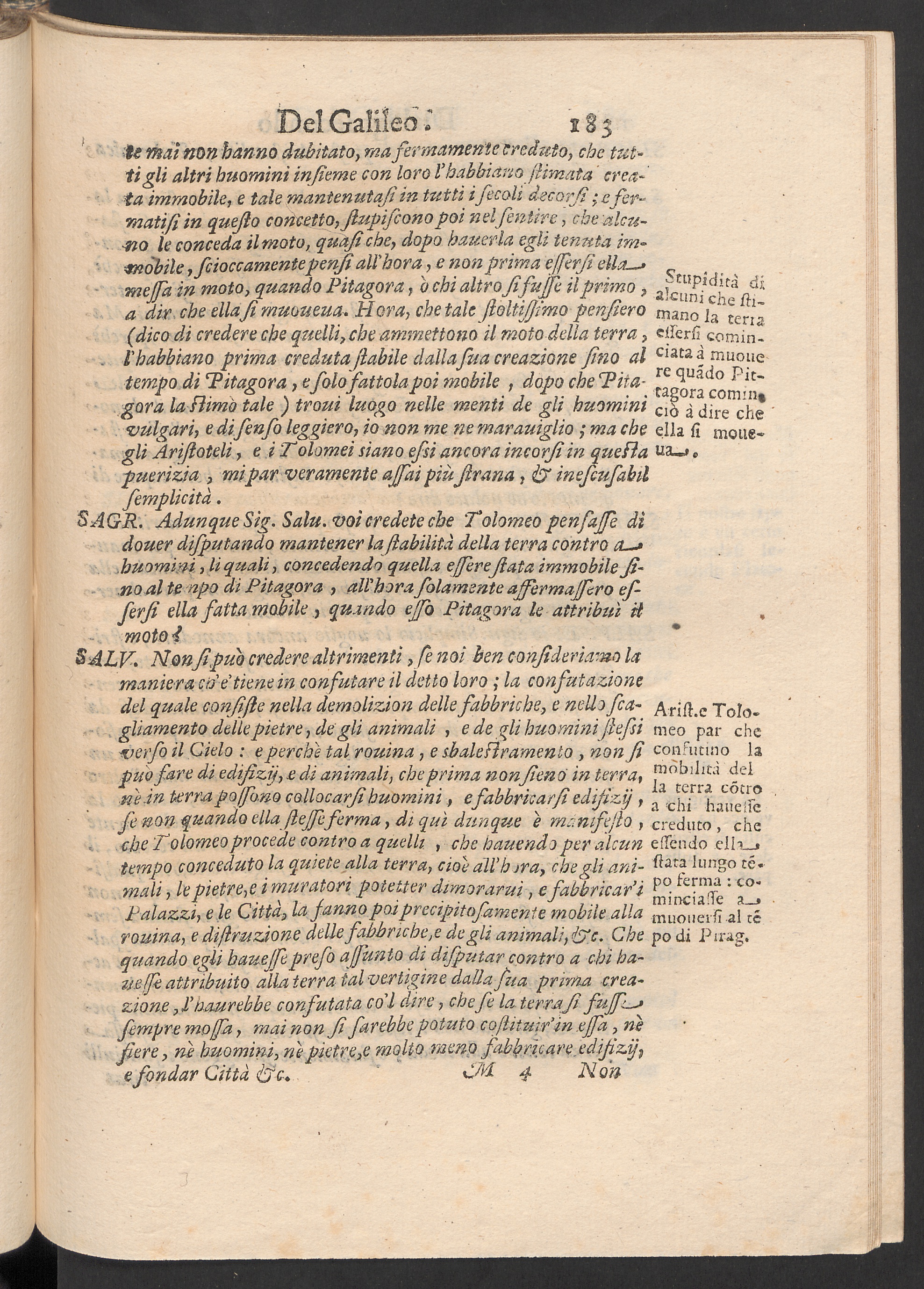 Dialogo di Galileo Galilei ... : dove ne i congressi di quattro giornate si discorre sopra i due massimi sistemi del mondo, Tolemaico, e Copernicano : proponendo indeterminatamente le ragioni filosofiche, e naturali tanto per l'una, quanto per l'altra parte