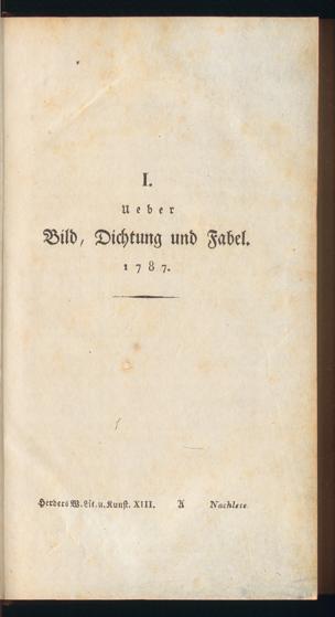 I. Ueber Bild, Dichtung und Fabel. 1787.